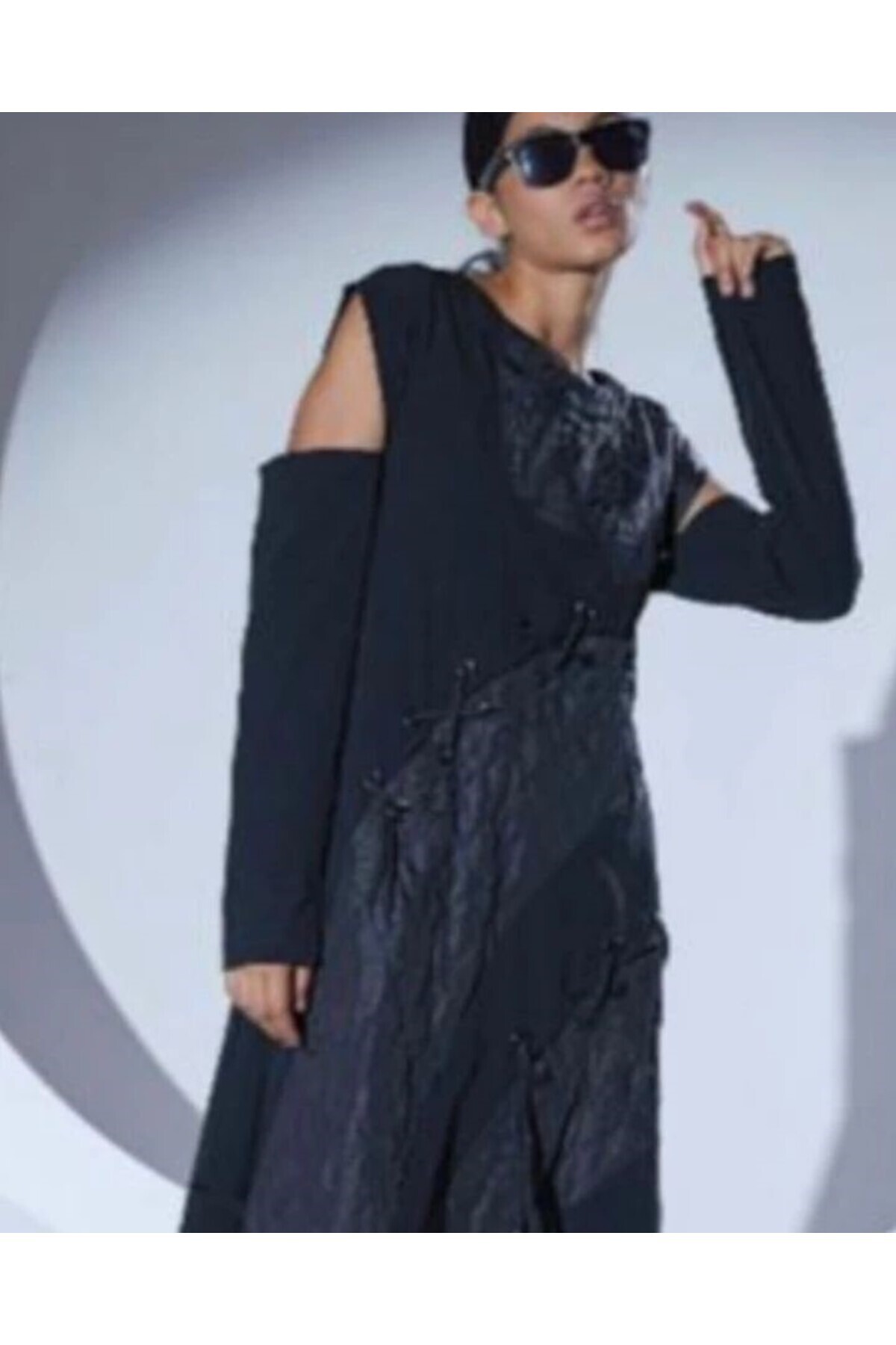 Kadın Siyah Üst Tarafı Modal Kumaş Alt Tarafı Paraşut Kumaş Fermuar Kapamalı Uzun Elbise Kadın Siyah Üst Tarafı Modal Kumaş Alt Tarafı Paraşut Kumaş Fermuar Kapamalı Uzun Elbise 5018-ALA Standart