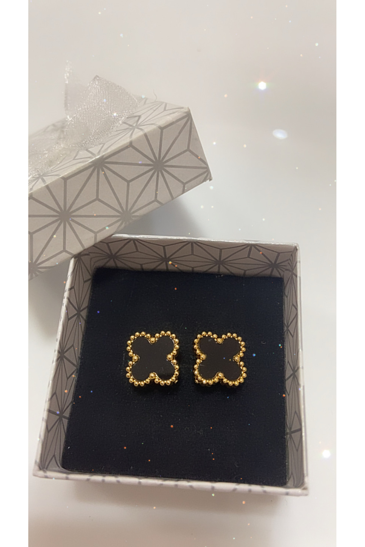 Siyah yonca detaylı çelik sallantılı küpe Siyah yonca detaylı çelik sallantılı küpe çlk-ync تک سایز