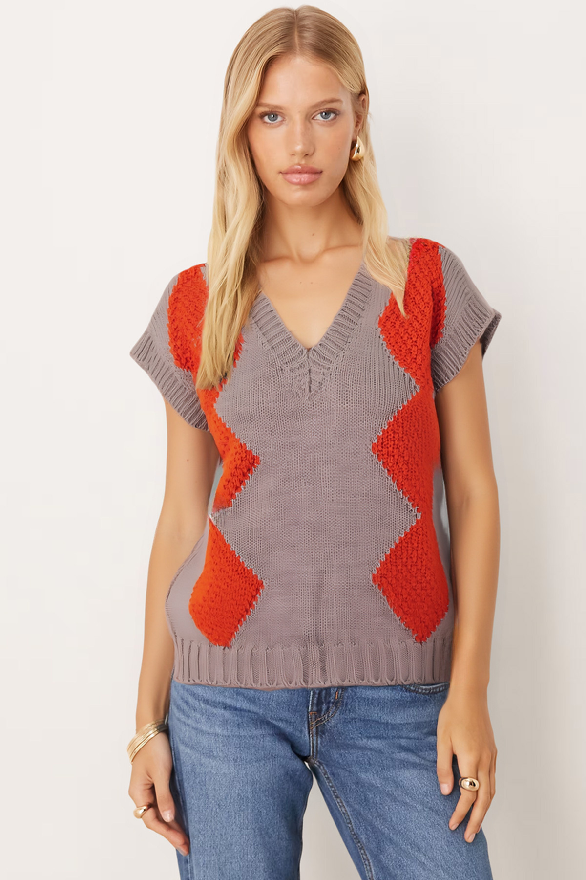 Kadın Turuncu V Yaka Saç Örgülü Triko Süveter ARM-26K136006 Kadın Turuncu V Yaka Saç Örgülü Triko Süveter ARM-26K136006 S/M
