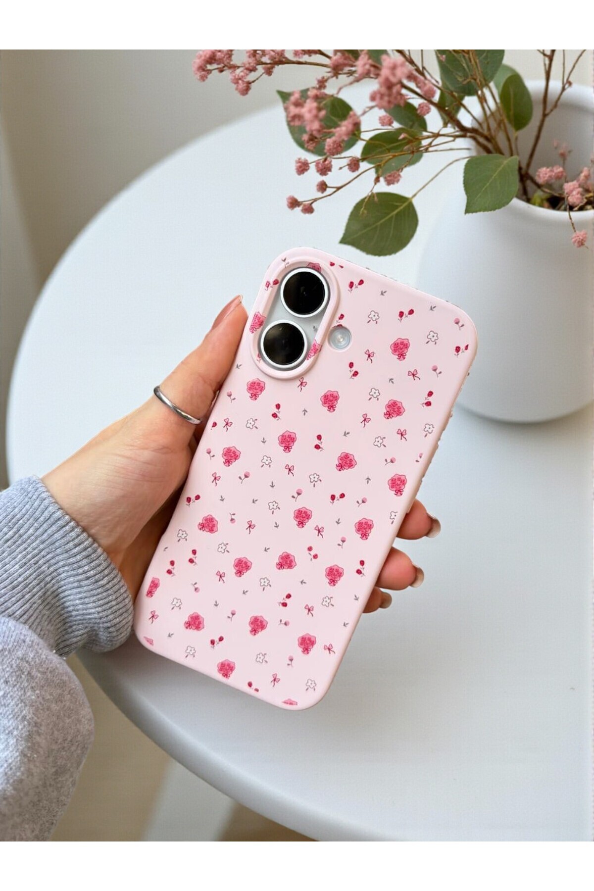 iPhone 16 Uyumlu Pembe Çiçek Desenli Lansman Liquid Silikon Yumuşak Kılıf iPhone 16 Uyumlu Pembe Çiçek Desenli Lansman Liquid Silikon Yumuşak Kılıf 16bsk تک سایز