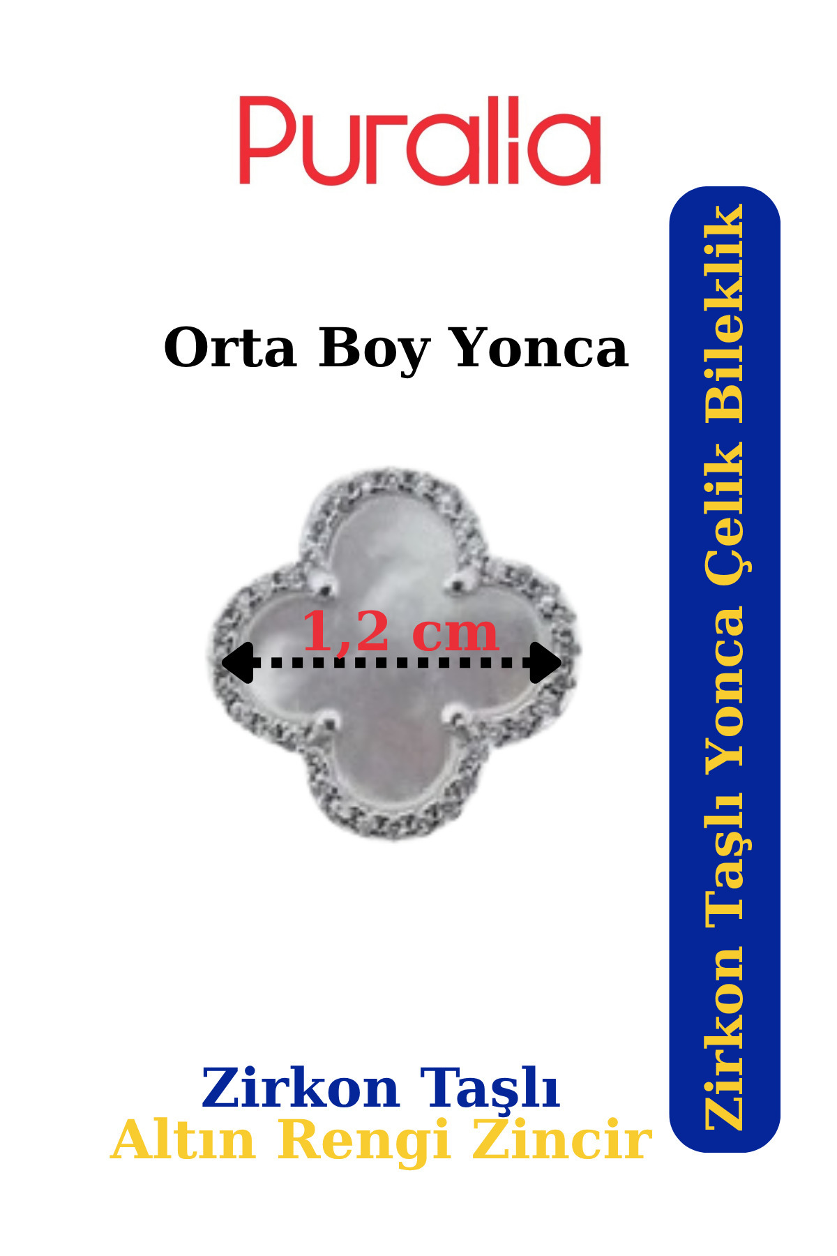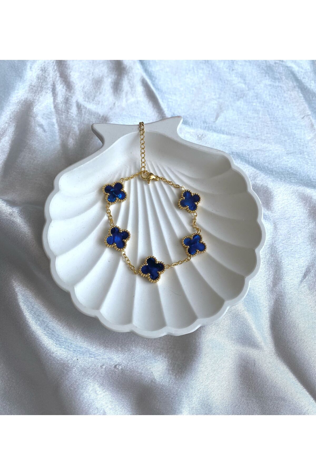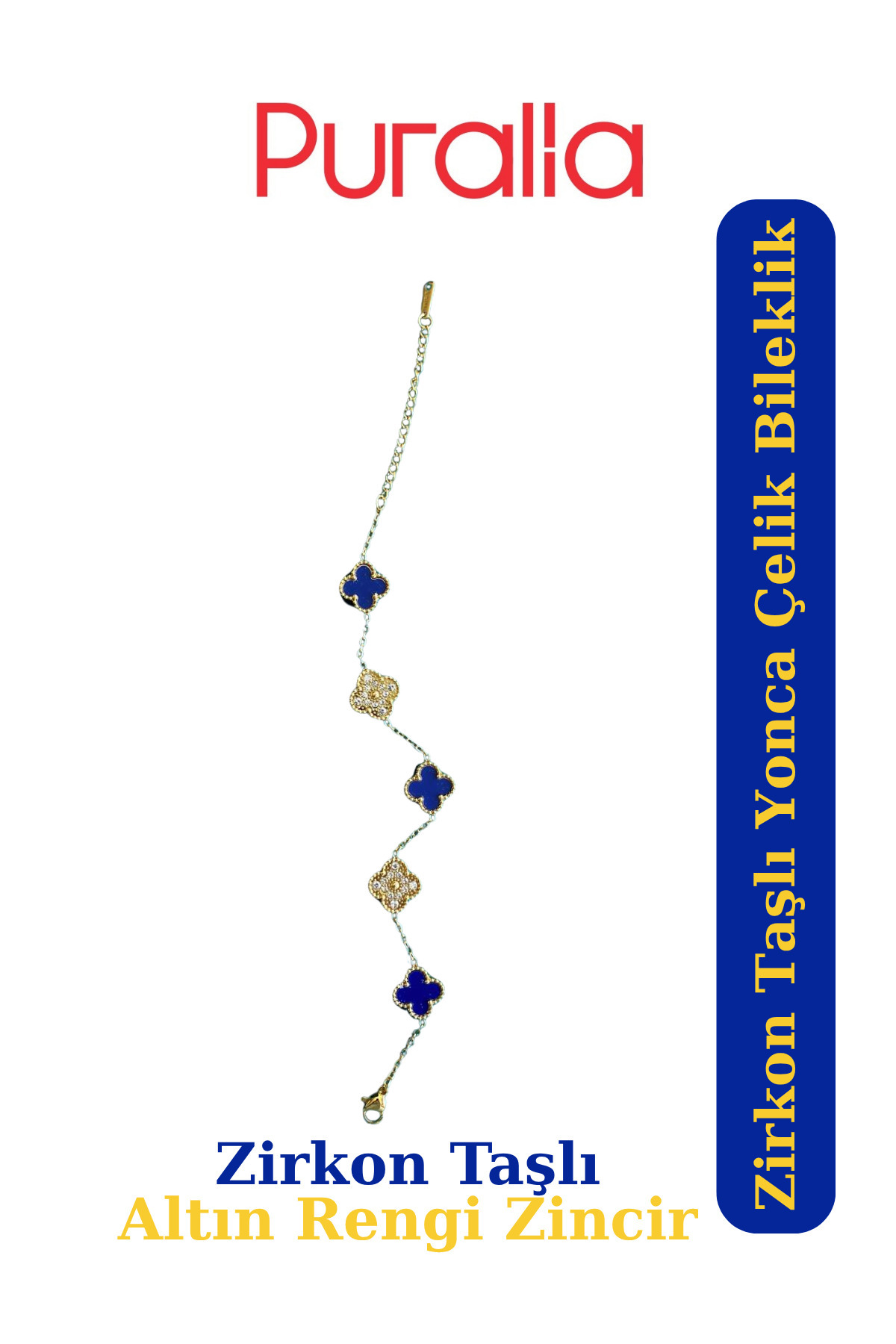 Zirkon Taşlı Lacivert Yonca Çelik Bileklik - Altın Sarısı Zincir Zirkon Taşlı Lacivert Yonca Çelik Bileklik - Altın Sarısı Zincir MSA010 M
