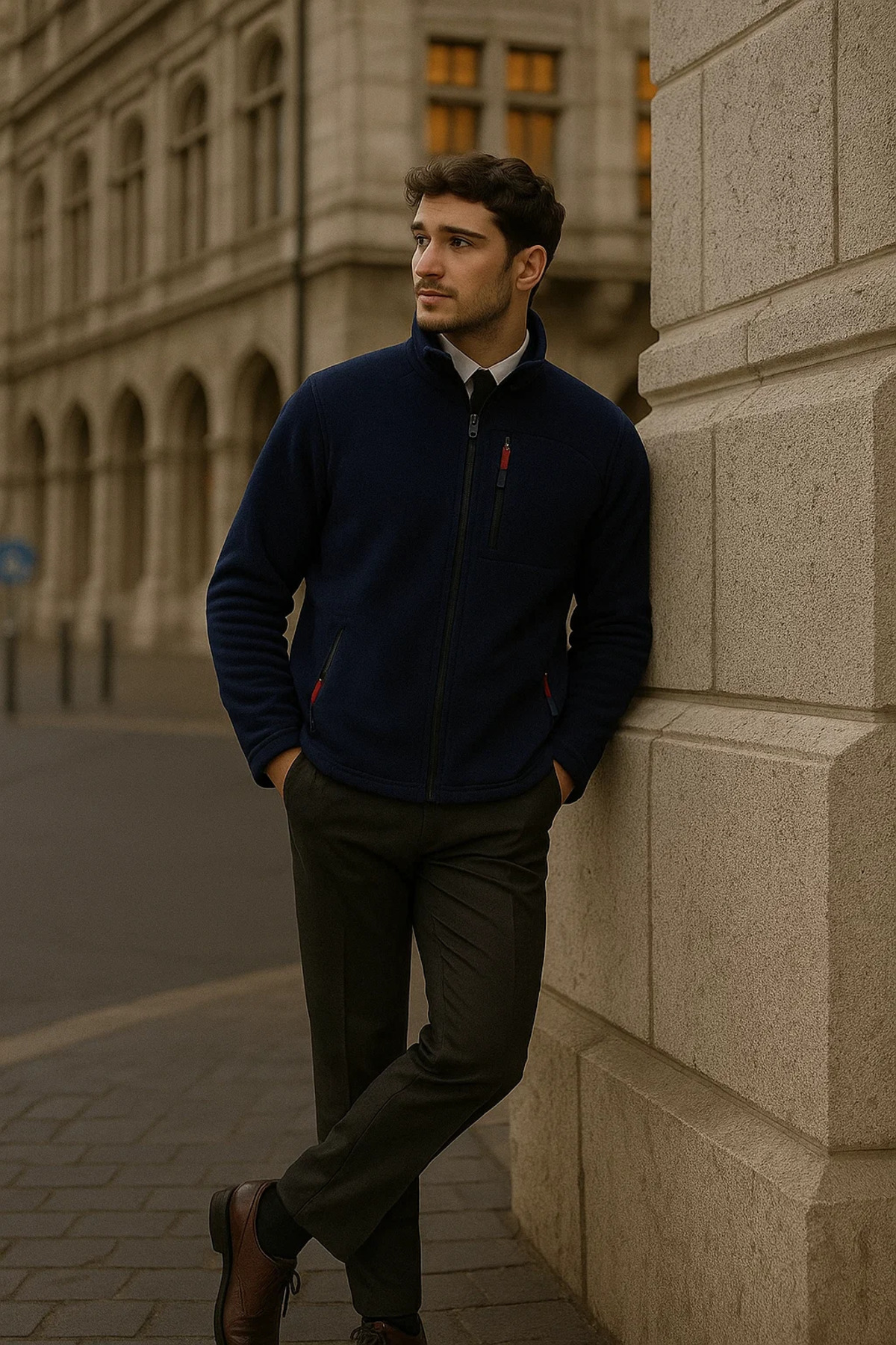 Erkek Dik Yaka Fermuarlı Lacivert Bol Polar Erkek Dik Yaka Fermuarlı Lacivert Bol Polar Paket-1209-2 2XL