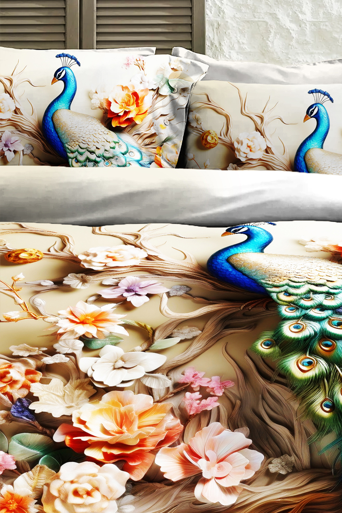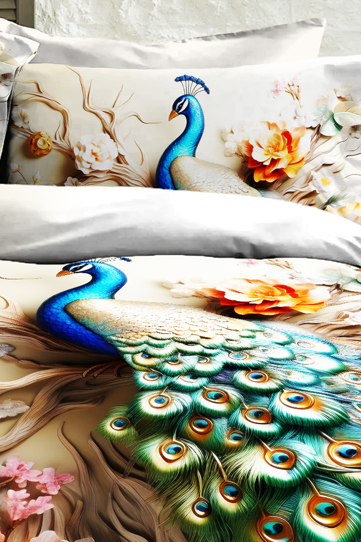 %100 PAMUK Ranforce Çeyizlik Luxury 5D Dijital Çift Kişilik Nevresim Takımı Tavus Kuşu %100 PAMUK Ranforce Çeyizlik Luxury 5D Dijital Çift Kişilik Nevresim Takımı Tavus Kuşu MONOHOME82396 تک سایز