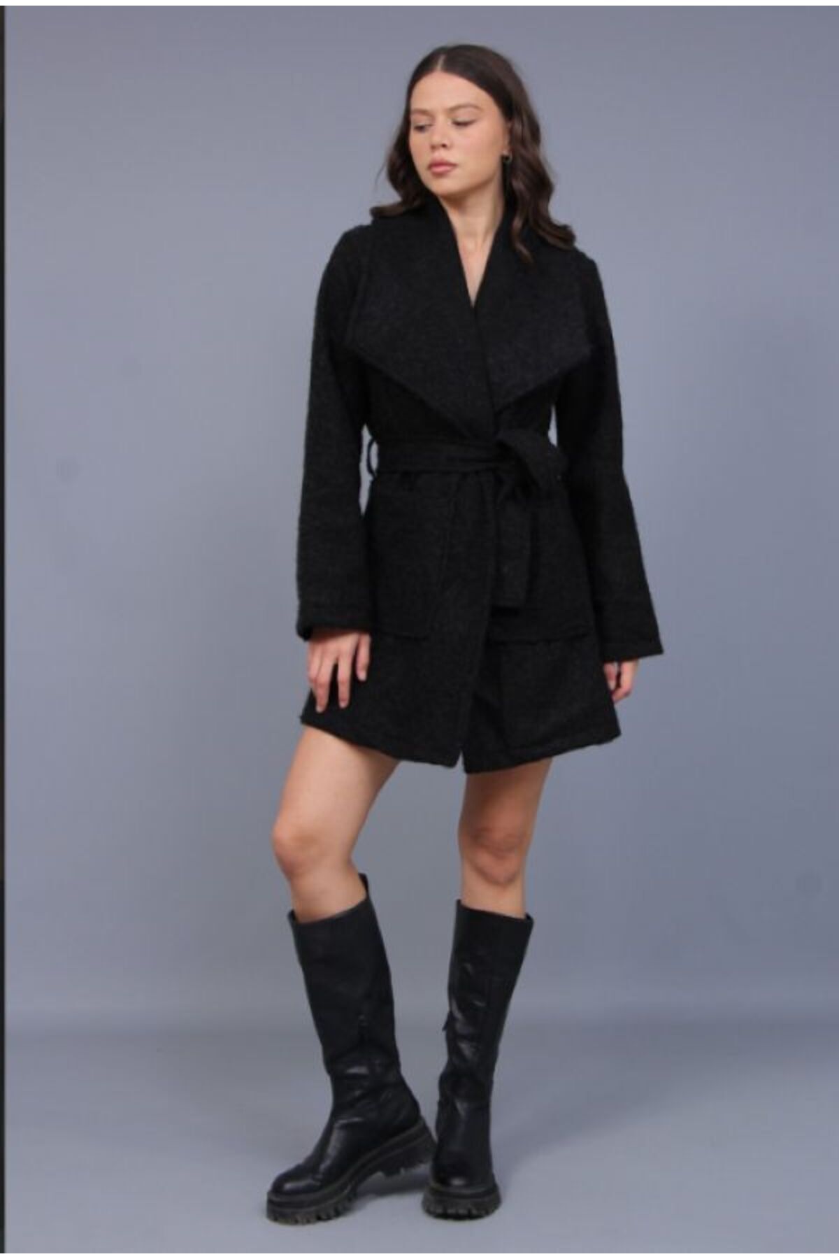 Kuşaklı Siyah Kısa Kaban Kuşaklı Siyah Kısa Kaban 2255566 XL
