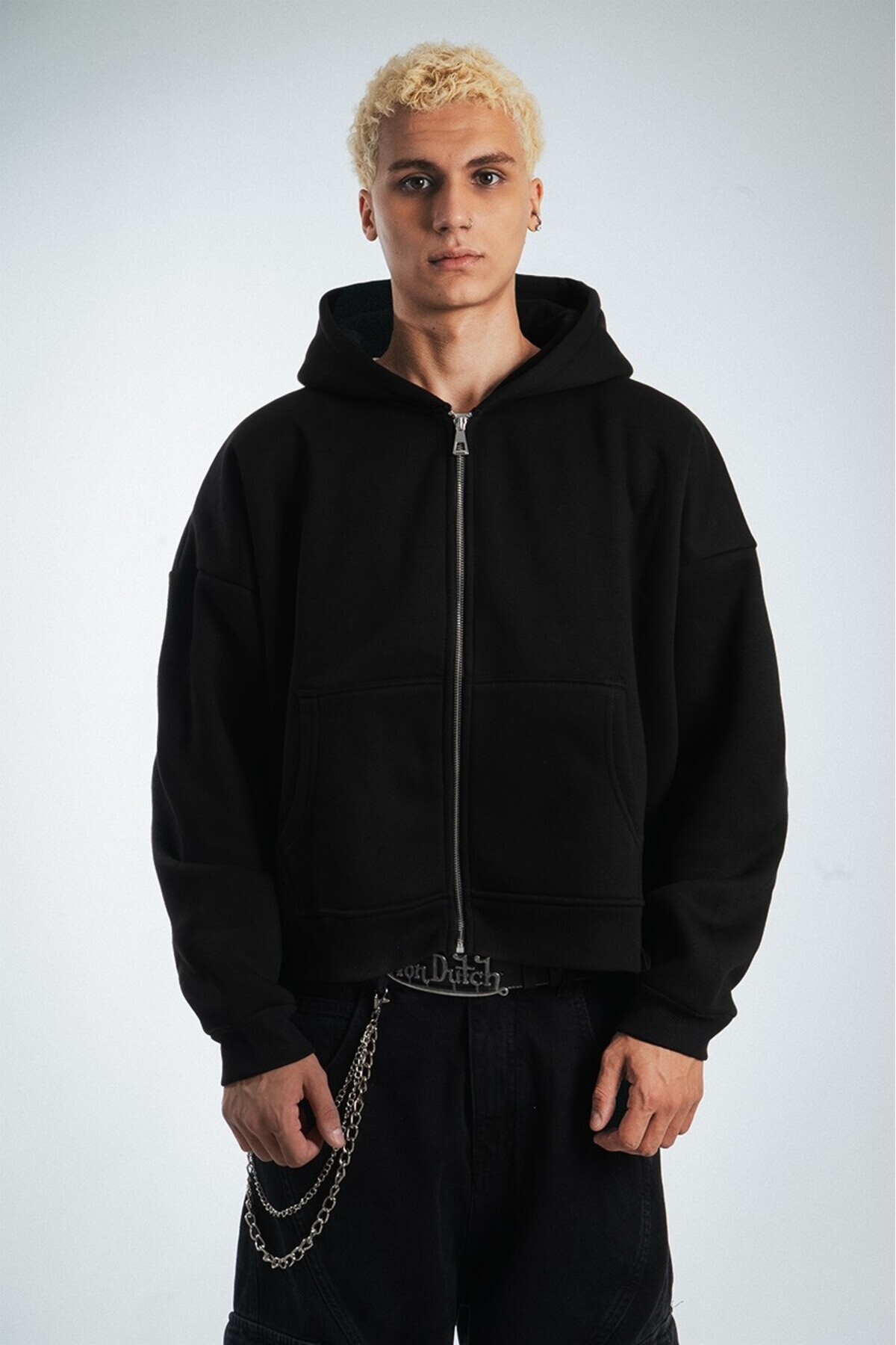 Siyah Boxy Crop Erkek Ceket Zip Hoodie Siyah Boxy Crop Erkek Ceket Zip Hoodie CR1003SY XL