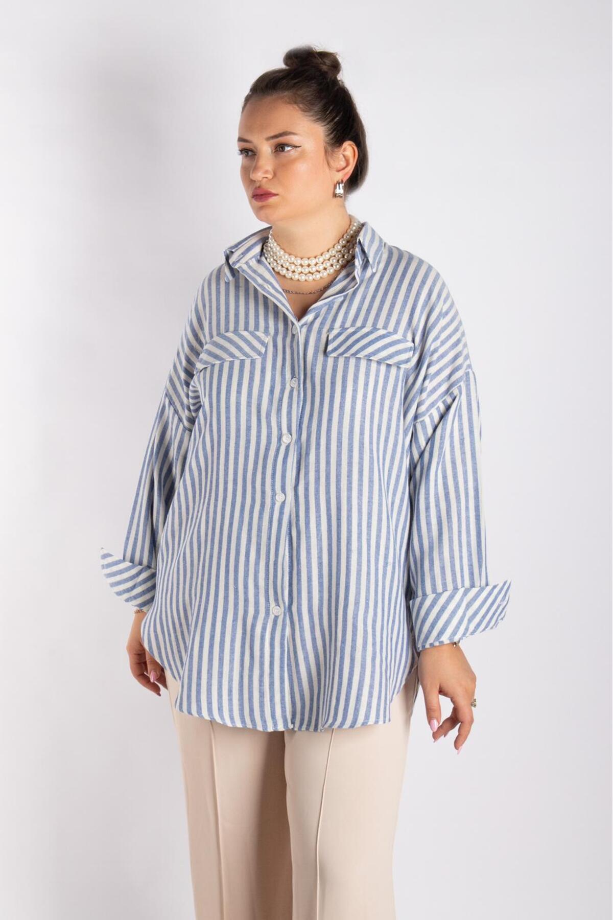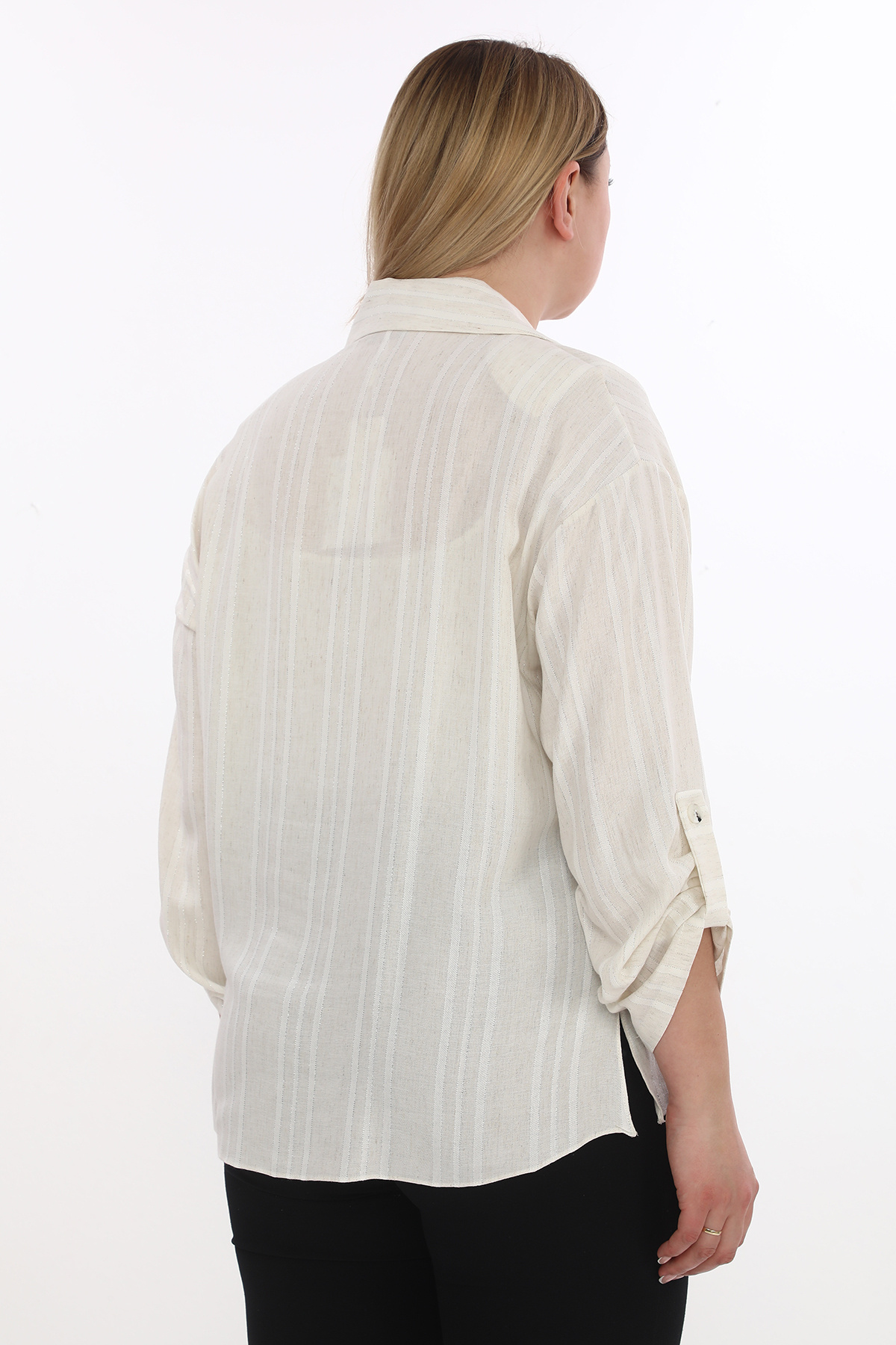 Büyük Beden Simli Çizgili Gömlek V Yaka Apoletli Uzun Kol Kadın Gömlek Büyük Beden Simli Çizgili Gömlek V Yaka Apoletli Uzun Kol Kadın Gömlek S25.18046-20 48