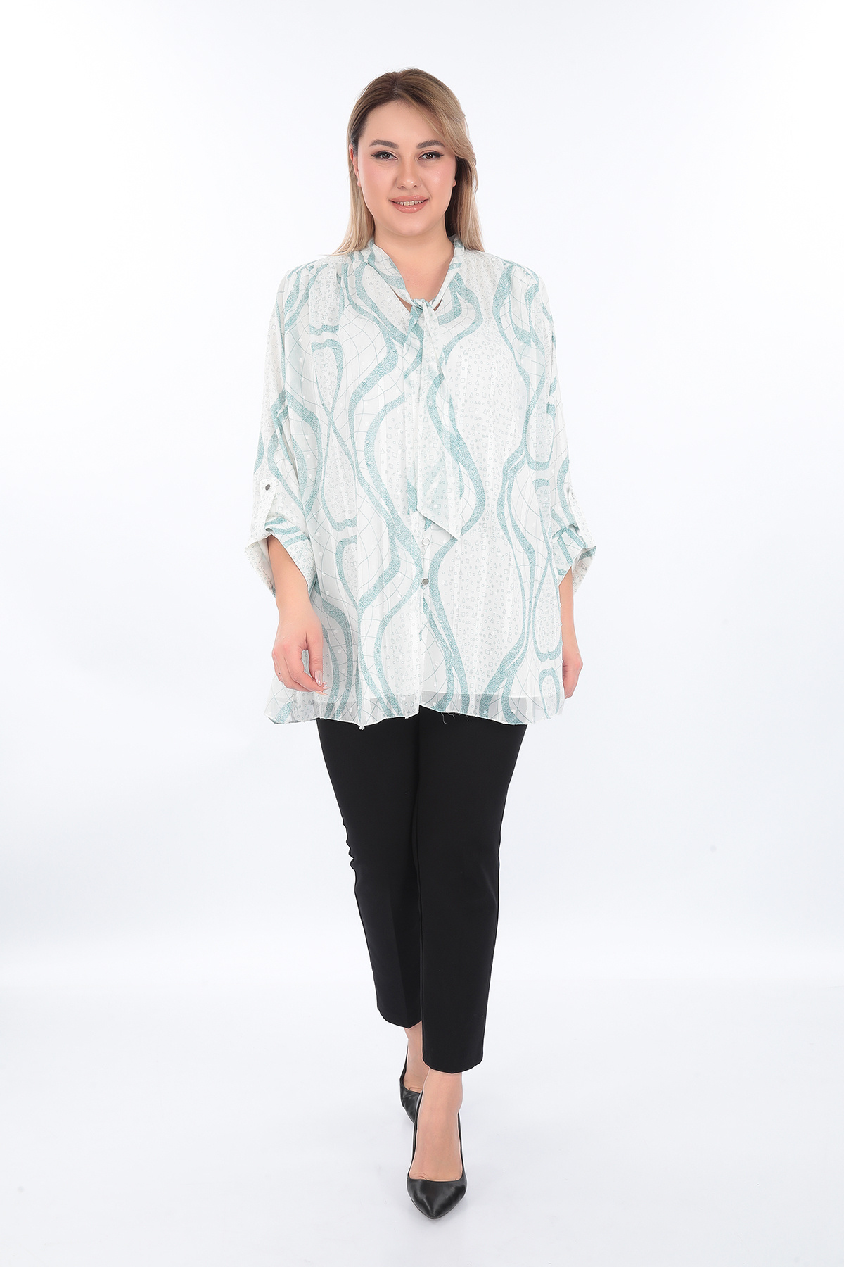 Büyük Beden (50-56) Baskılı Şifon Astarlı Uzun Kol Boyundan Bağlamalı V Yaka Kadın Abiye Tunik Büyük Beden (50-56) Baskılı Şifon Astarlı Uzun Kol Boyundan Bağlamalı V Yaka Kadın Abiye Tunik S25.23036-20 56