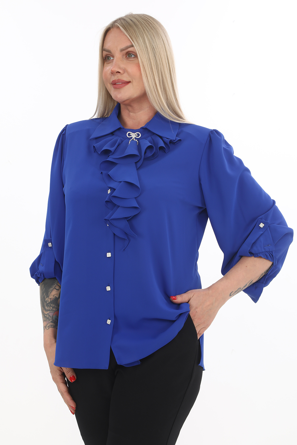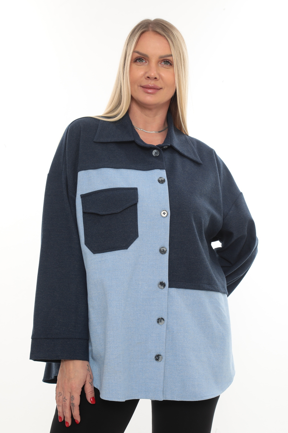 Büyük Beden (50-56) Çift Renk Detaylı Gömlek Yaka Uzun Kol Düğmeli Kadın Bluz Büyük Beden (50-56) Çift Renk Detaylı Gömlek Yaka Uzun Kol Düğmeli Kadın Bluz W26.23546-21 56