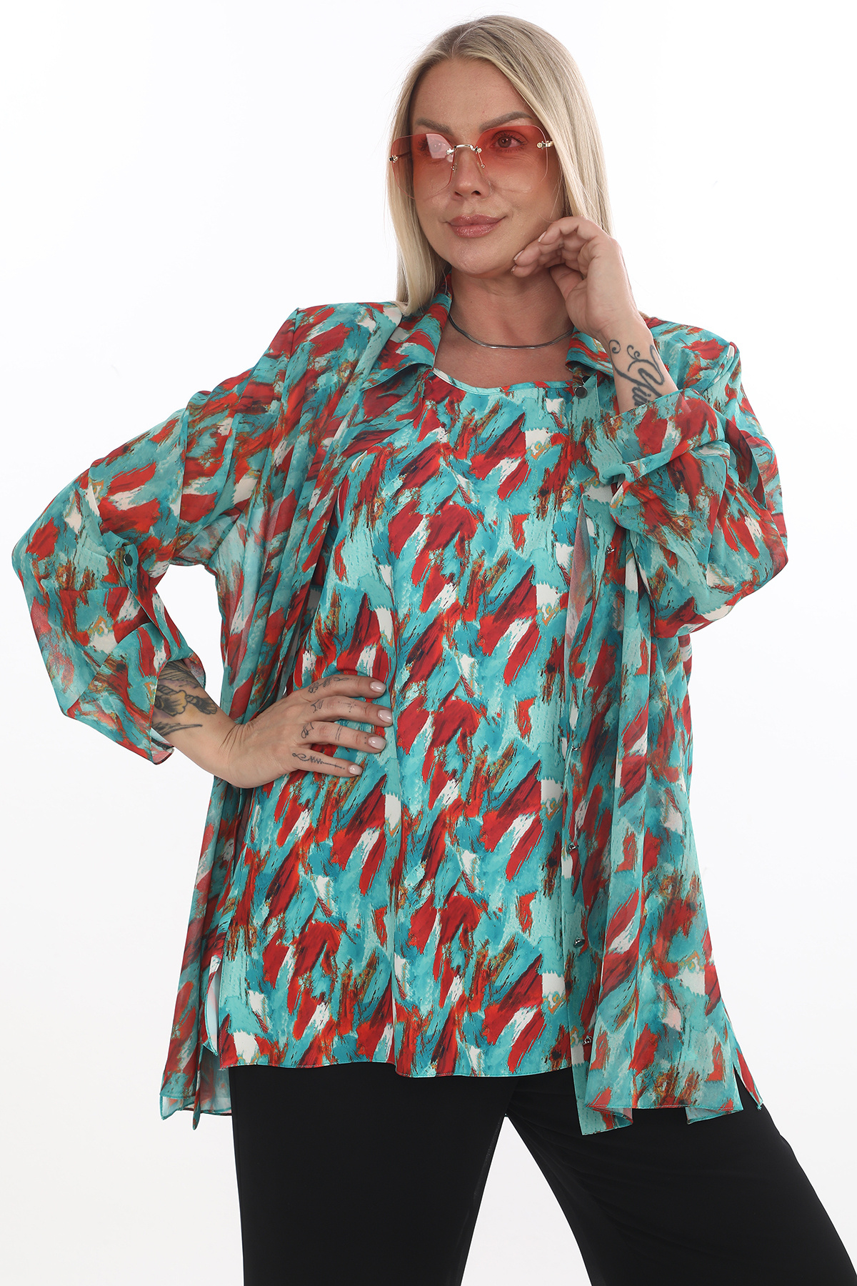 Büyük Beden (50-56) Şifon İkili Takım Renkli Desenli Gömlek ve Kolsuz Atlet Kadın Tunik Büyük Beden (50-56) Şifon İkili Takım Renkli Desenli Gömlek ve Kolsuz Atlet Kadın Tunik S25.23062-20 56