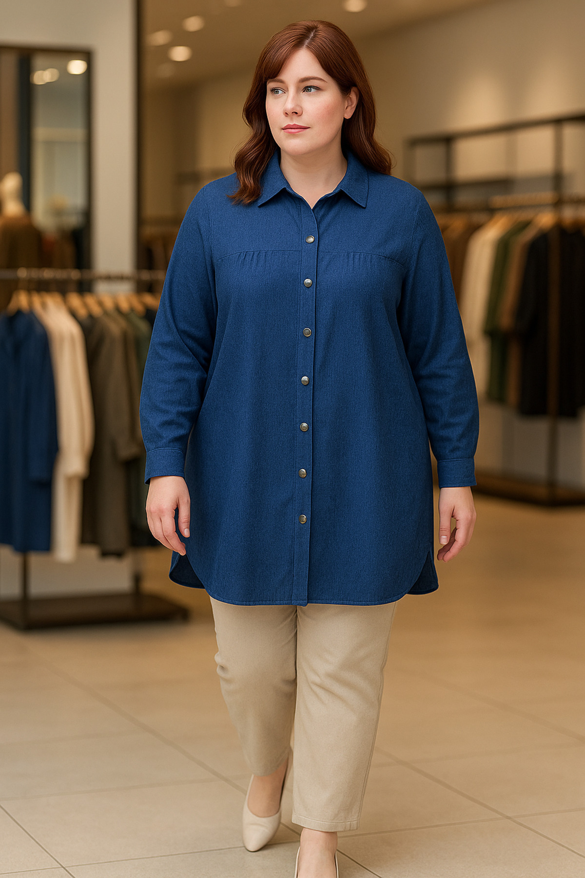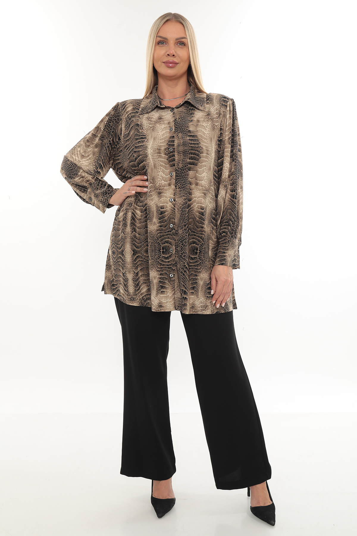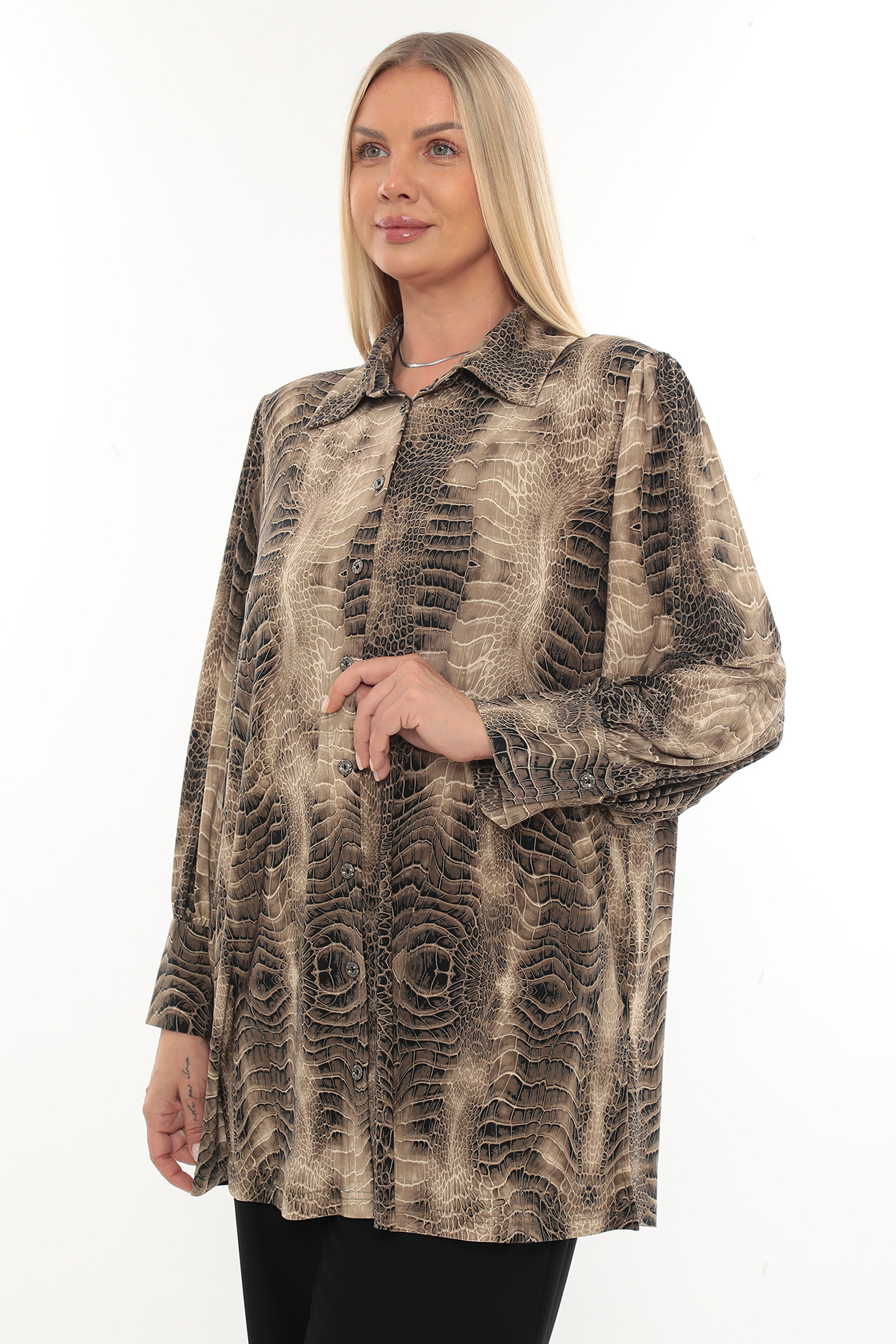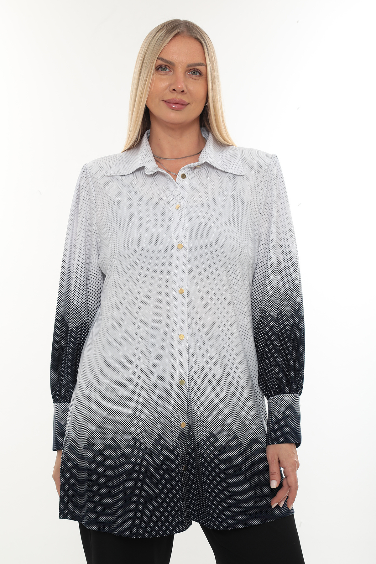 Büyük Beden (50-56) Gömlek Yaka Düğmeli Uzun Kol Desenli Lycra Kadın Tunik Büyük Beden (50-56) Gömlek Yaka Düğmeli Uzun Kol Desenli Lycra Kadın Tunik S25.23021-01 56