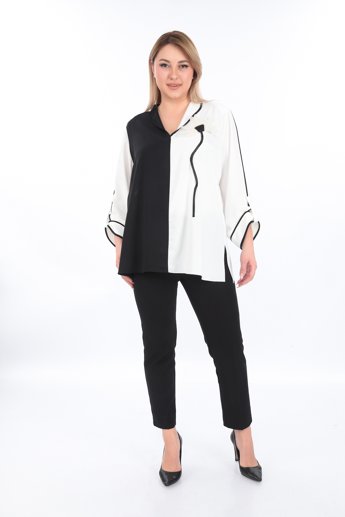 Büyük Beden (50-56) V Yaka Apoletli Uzun Kol 3D Çiçek Detaylı Kadın Tunik Büyük Beden (50-56) V Yaka Apoletli Uzun Kol 3D Çiçek Detaylı Kadın Tunik S25.23024-20 56