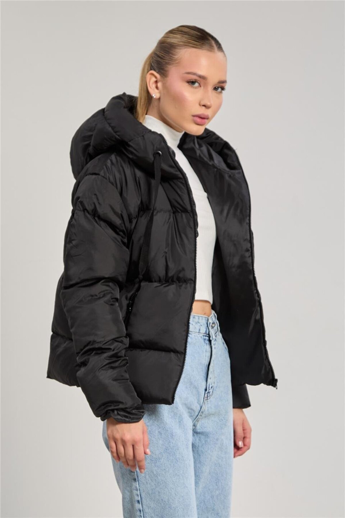 Kadın Kapüşonlu Kürk Detaylı Mont - Siyah Kadın Kapüşonlu Kürk Detaylı Mont - Siyah 485-25K98004 2XL