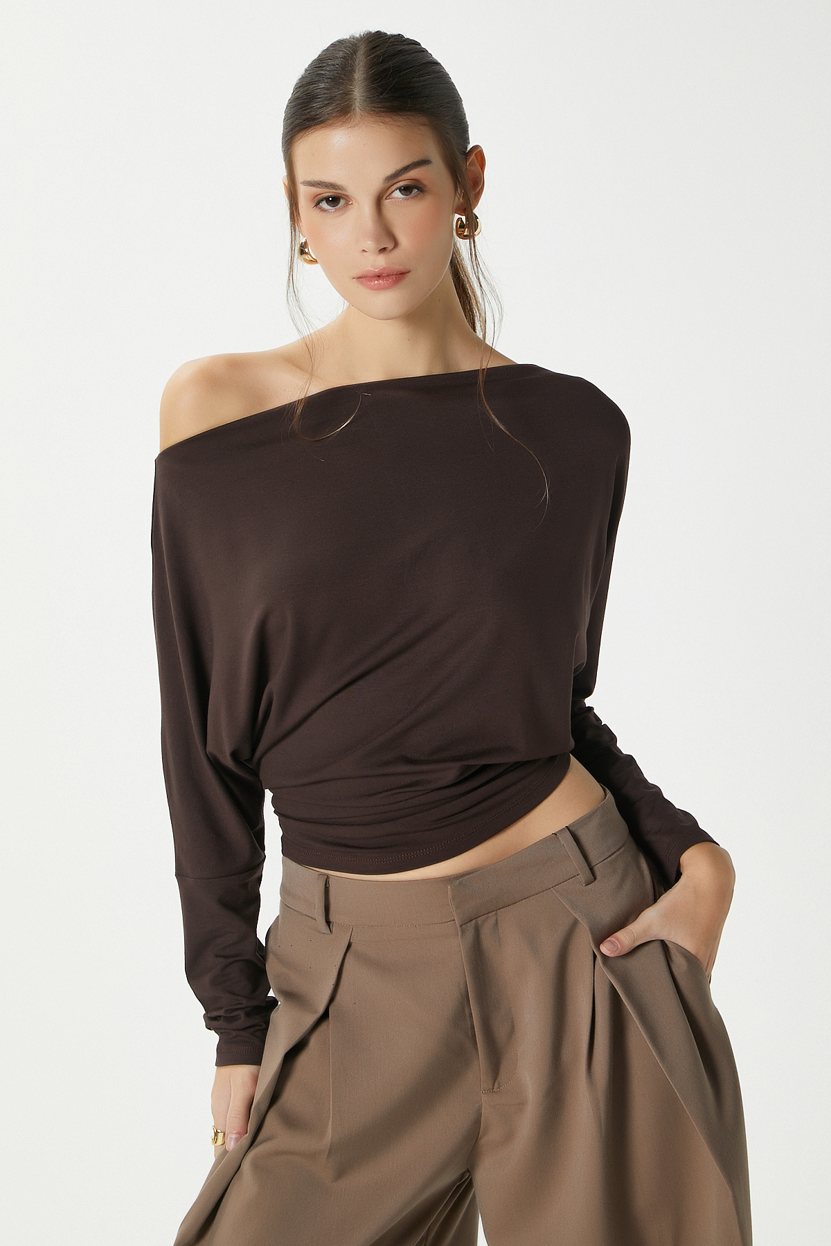 Kadın Grace Asimetrik Omuz Detay Kahverengi Bluz Kadın Grace Asimetrik Omuz Detay Kahverengi Bluz 1617 S