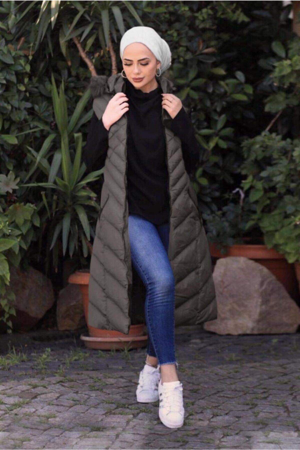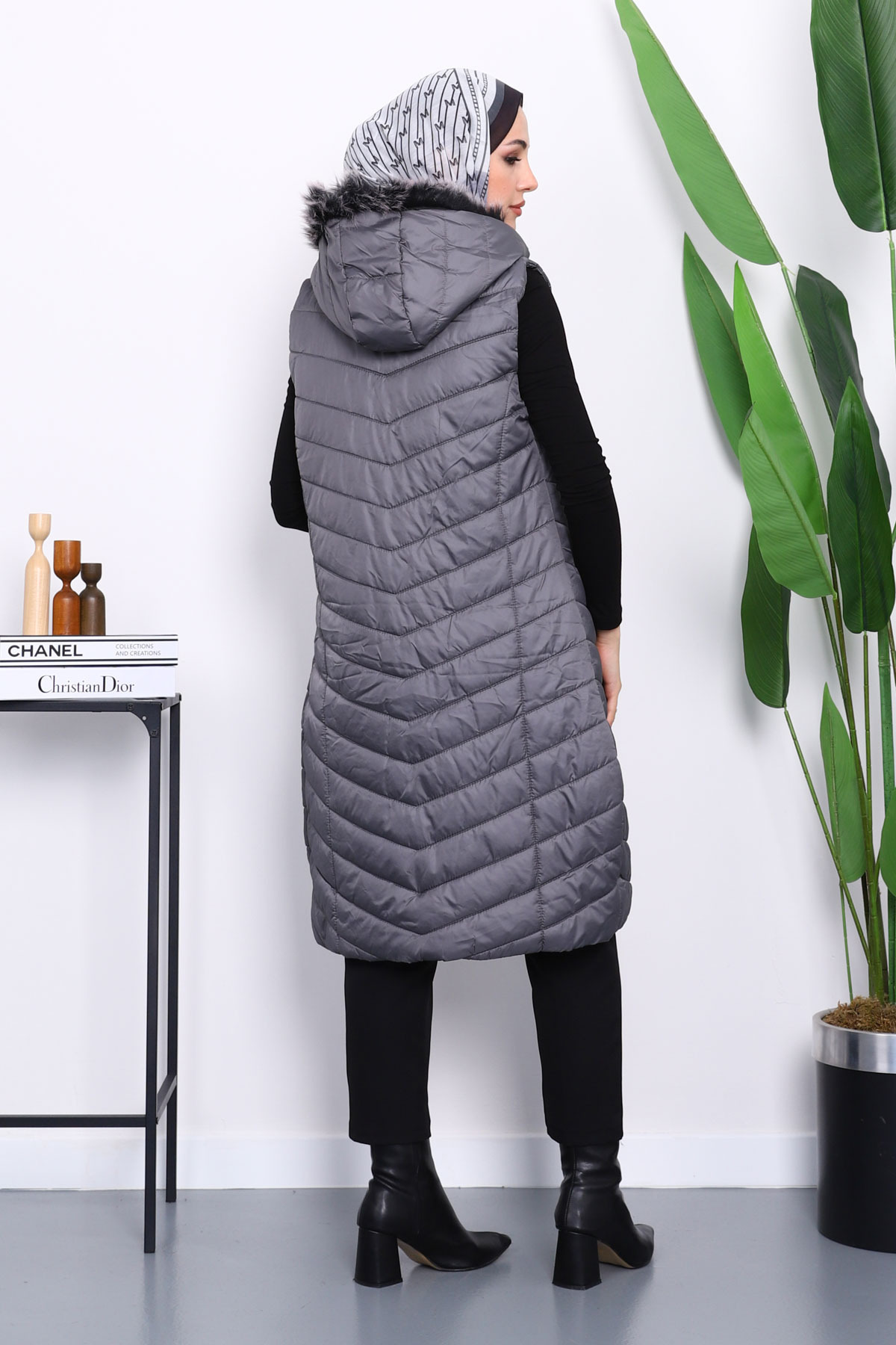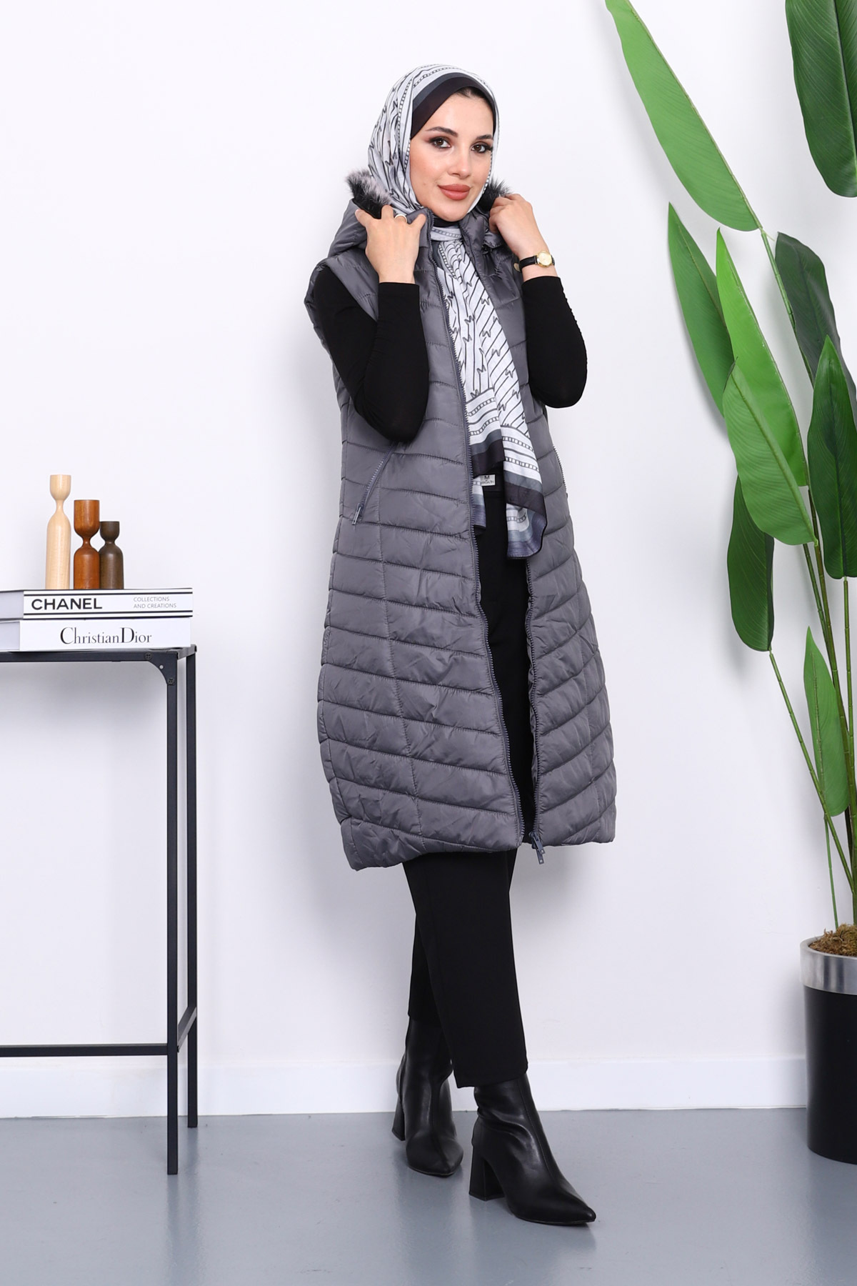 Antrasit Kapüşonlu Uzun Şişme Yelek Antrasit Kapüşonlu Uzun Şişme Yelek IMJ007885 42