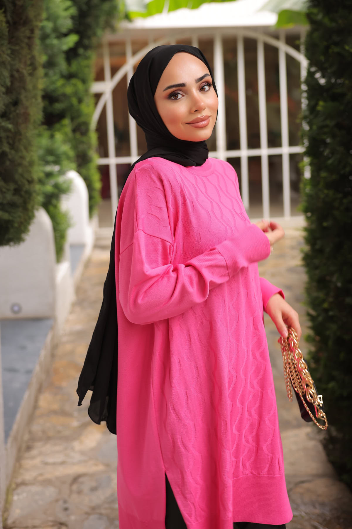 Fuşya Bisiklet Yaka Soğuk İplik Triko Tunik Fuşya Bisiklet Yaka Soğuk İplik Triko Tunik IMJ008215 Standart