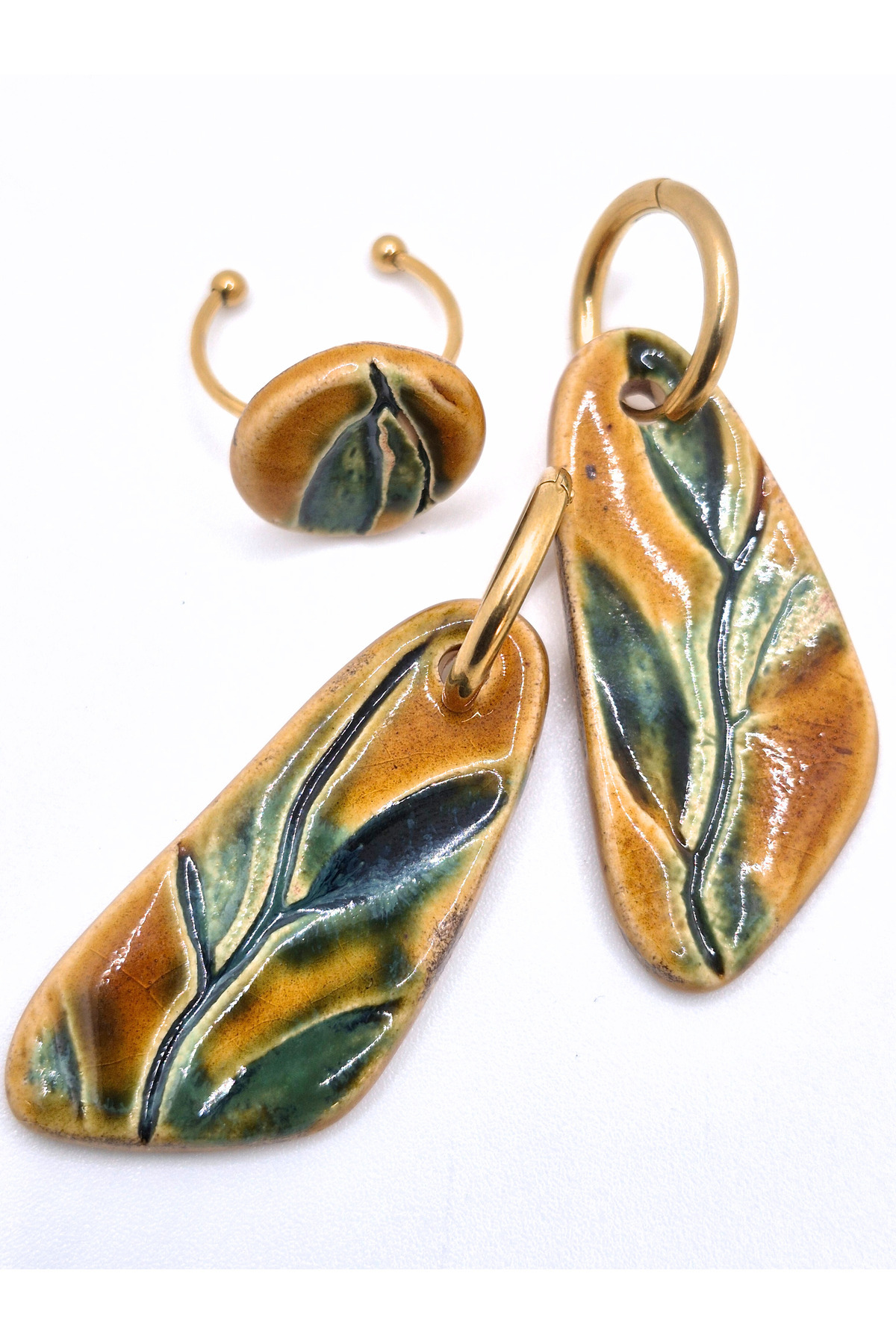Yaprak Dokulu Seramik Küpe, Kolye ve Yüzük Yaprak Dokulu Seramik Küpe, Kolye ve Yüzük PLNYDSS01 تک سایز