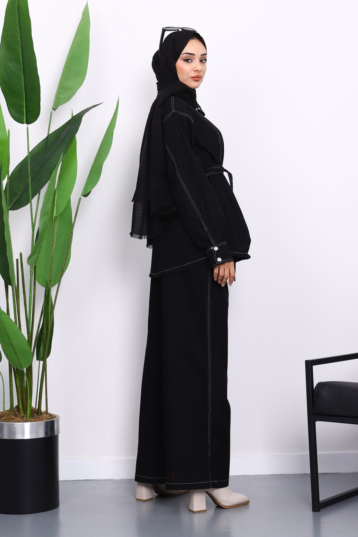 Siyah Çıtçıtlı Ceket Pantolonlu Gabardin Takım Siyah Çıtçıtlı Ceket Pantolonlu Gabardin Takım IMJ008247 2