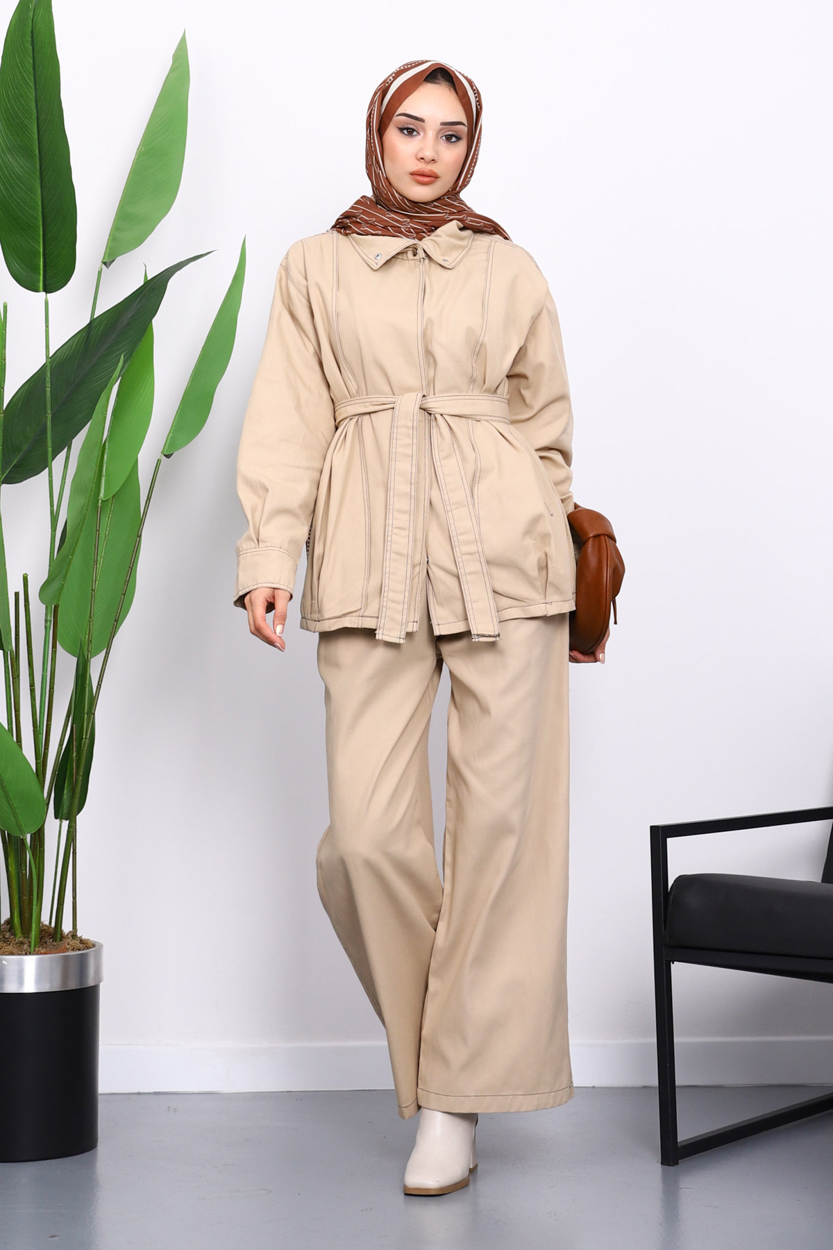 Haki Çıtçıtlı Ceket Pantolonlu Gabardin Takım Haki Çıtçıtlı Ceket Pantolonlu Gabardin Takım IMJ008247 2
