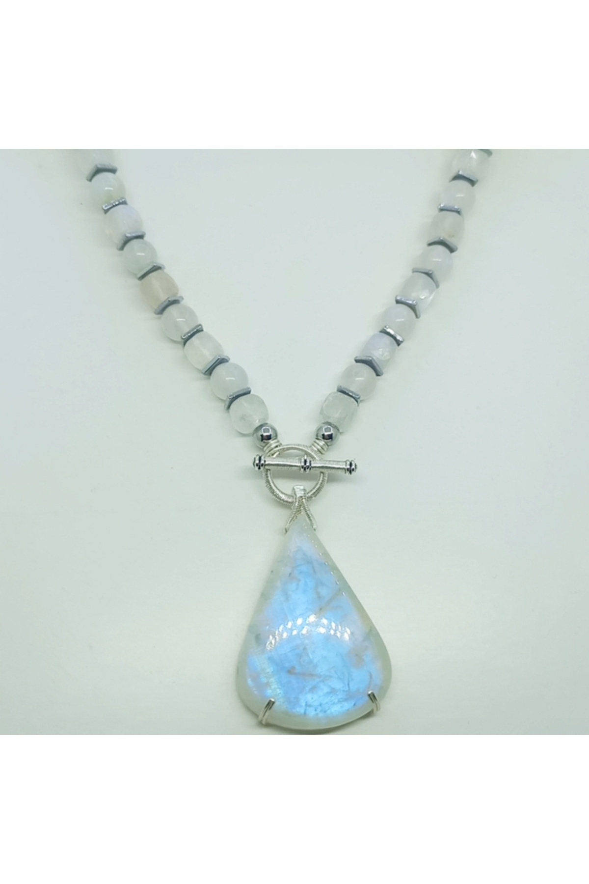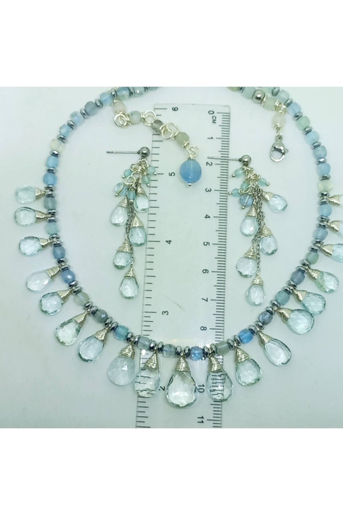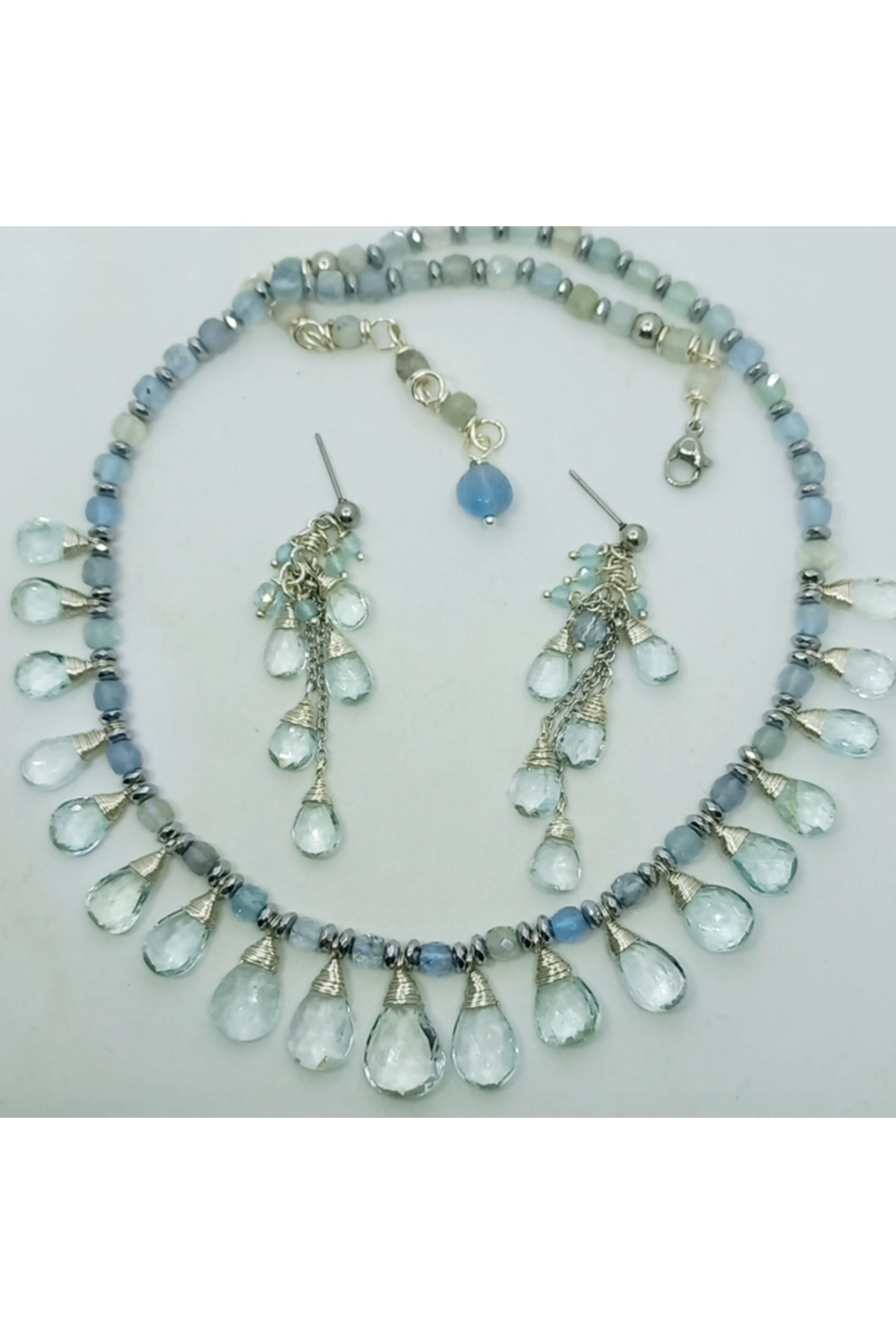 2497 Hindistan el kesimi faset kesim damla Akuamarin, Hematit el yapımı kolye a 2497 Hindistan el kesimi faset kesim damla Akuamarin, Hematit el yapımı kolye a 48 cm