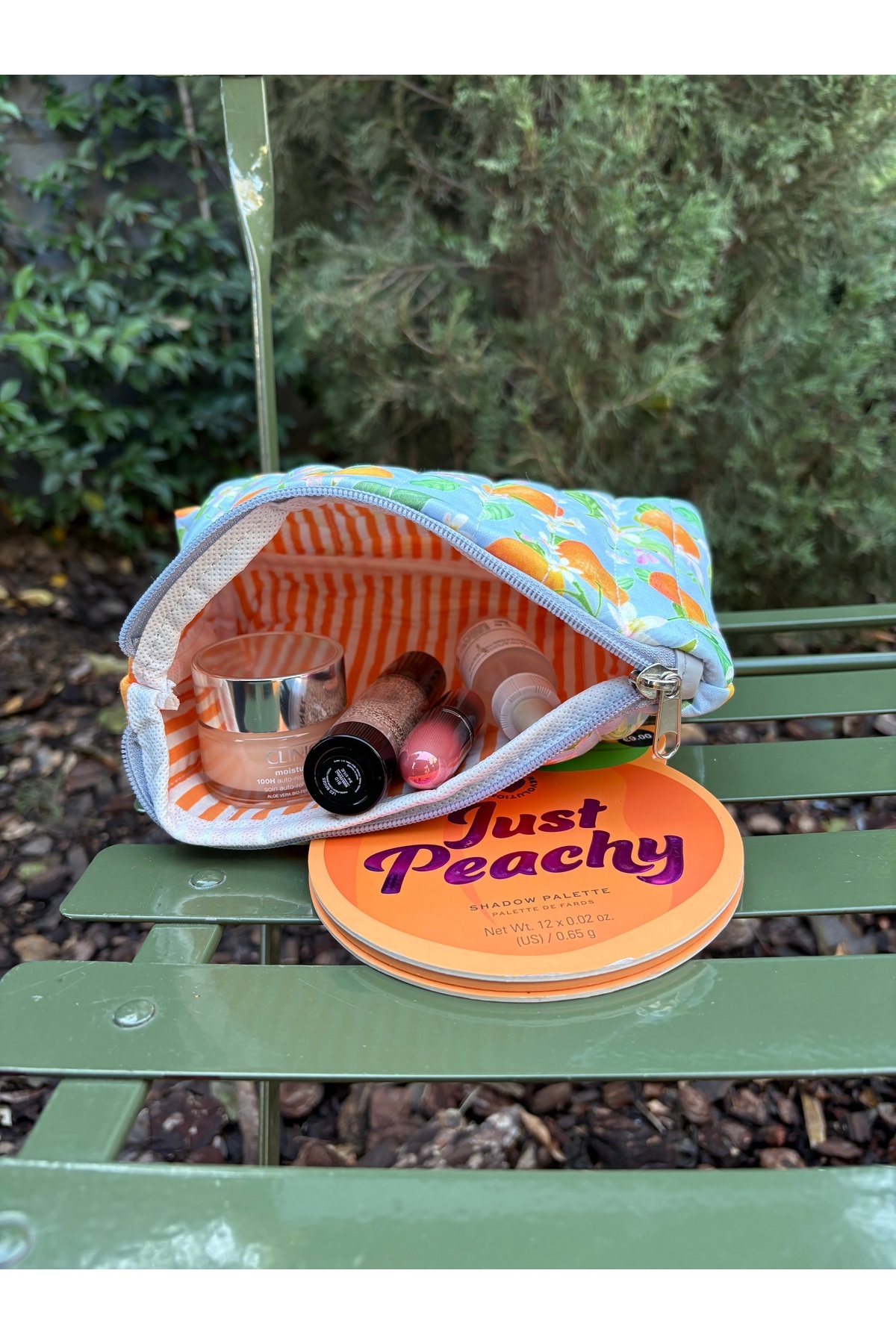 Portakal Baskılı Kapitoneli Üçgen Makyaj Çantası, içi çizgi baskılı makyaj çantası Portakal Baskılı Kapitoneli Üçgen Makyaj Çantası, içi çizgi baskılı makyaj çantası ICN0327 تک سایز