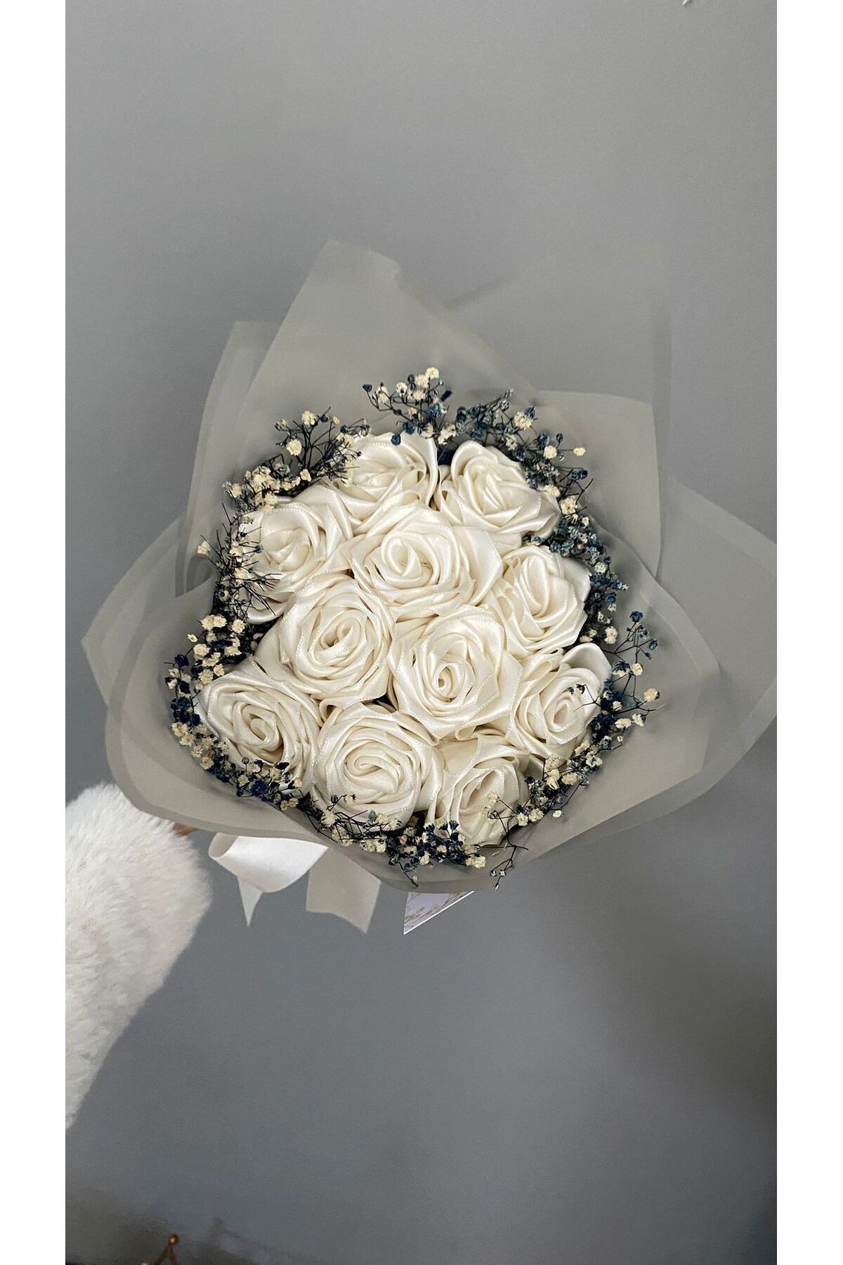 11'li Beyaz Cipsolu Solmayan Gül Buketi, Saten Çiçek, Sevgiliye Hediye 11'li Beyaz Cipsolu Solmayan Gül Buketi, Saten Çiçek, Sevgiliye Hediye SSG-BC-042 تک سایز