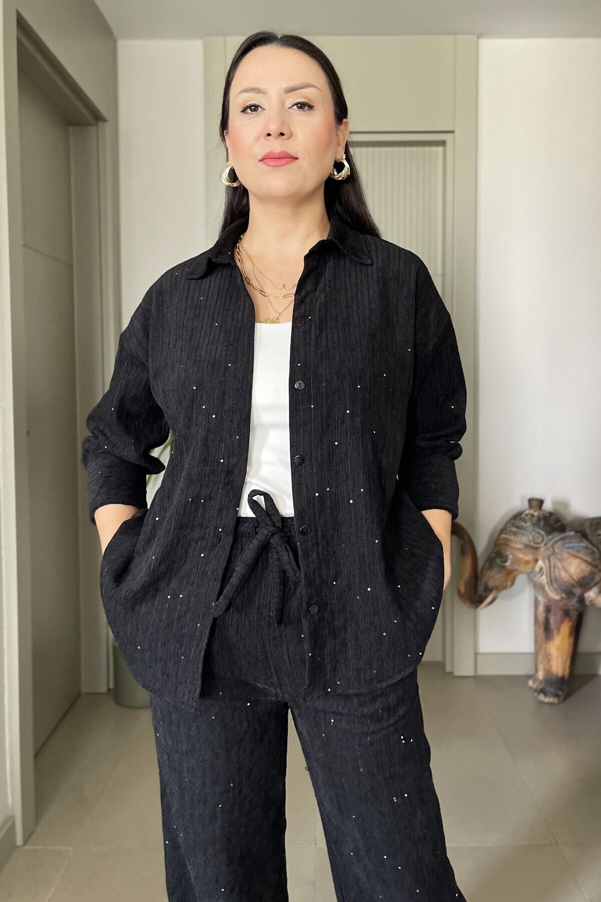Kadın Kadife Oversize Salaş Kangru Cep Kapşonlu Sweatshirt Lastik Paça Spor Şık Eşofman Takımı Kadın Kadife Oversize Salaş Kangru Cep Kapşonlu Sweatshirt Lastik Paça Spor Şık Eşofman Takımı MMYG1404 L