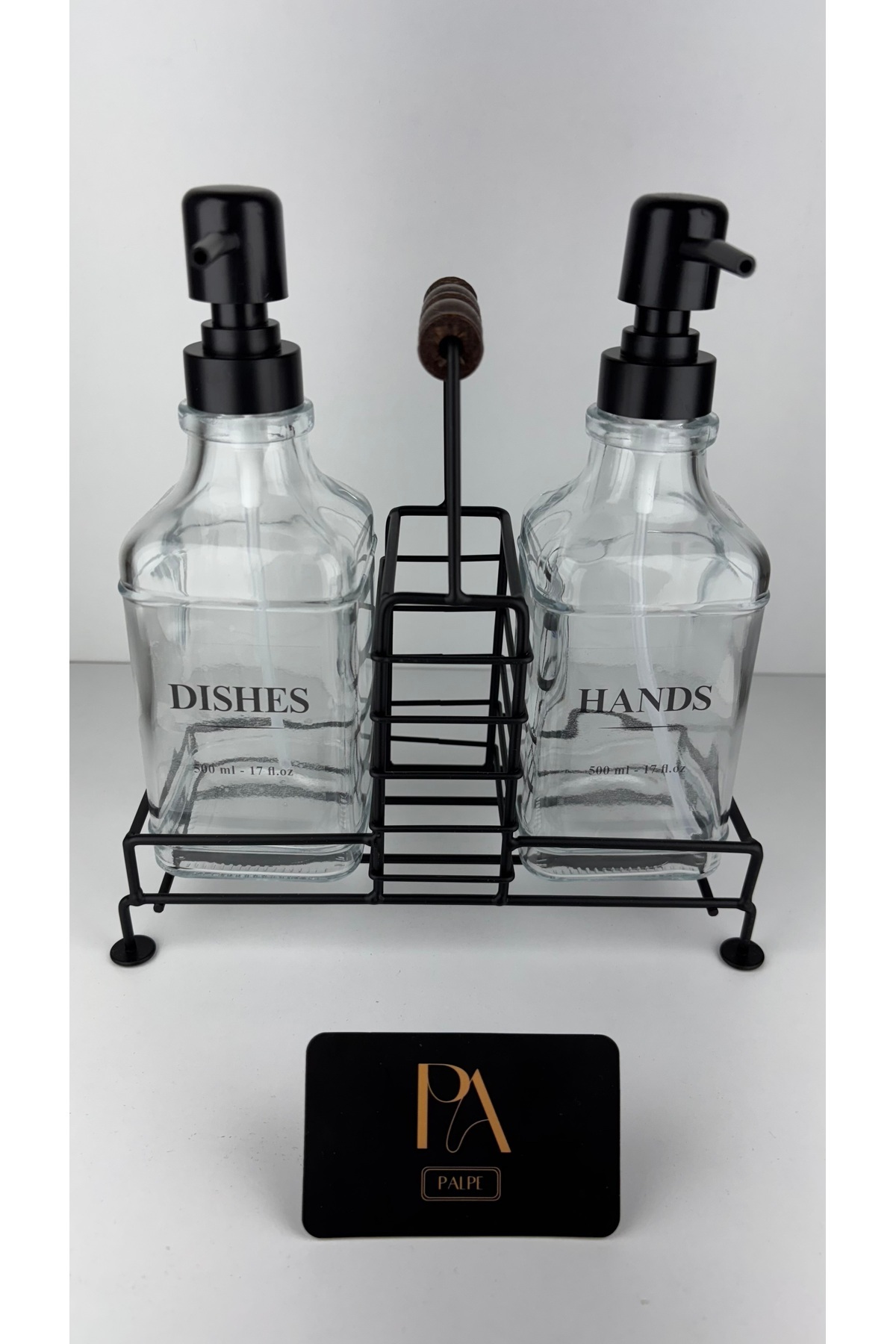2Lİ STANDLI MUTFAK SET CAM SIVI SABUNLUK SÜNGERLİK TEZGAH ÜSTÜ BULAŞIKLIK ŞIK DEKORATİF 500ML LVN-MTFK-