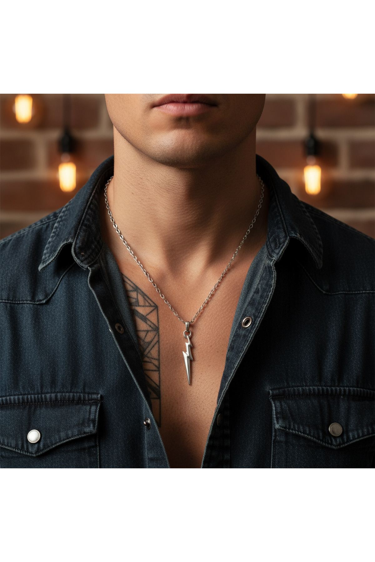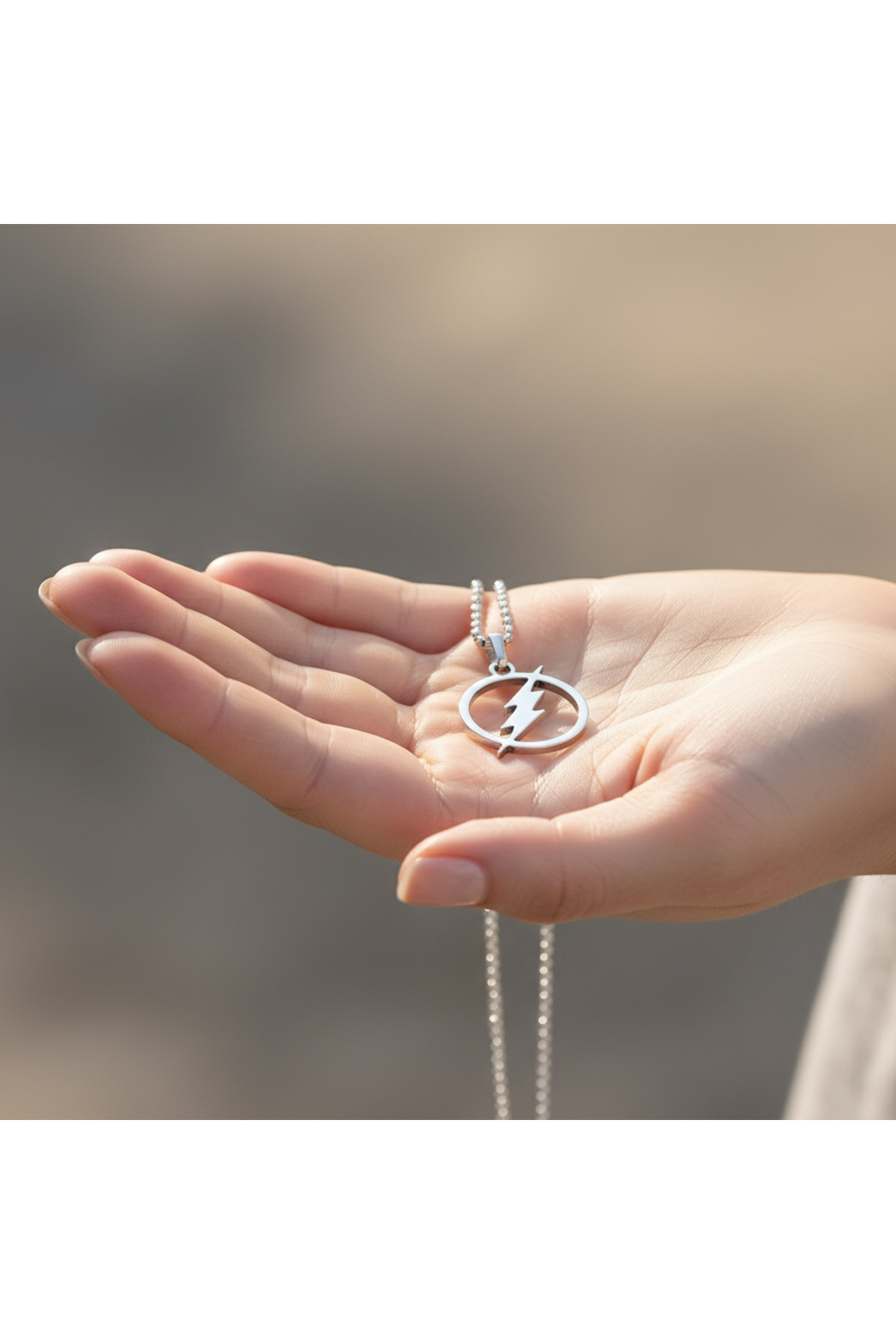 Şimşek - The Flash Gümüş Kaplama Örme Zincir Kolye Şimşek - The Flash Gümüş Kaplama Örme Zincir Kolye 1087 60 cm