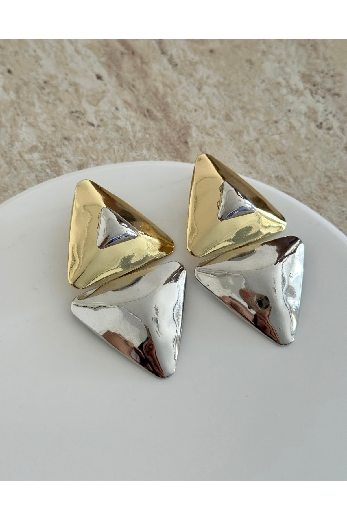 GOLD GÜMÜŞ MİX ÜÇGEN KÜPE GOLD GÜMÜŞ MİX ÜÇGEN KÜPE PS456 تک سایز