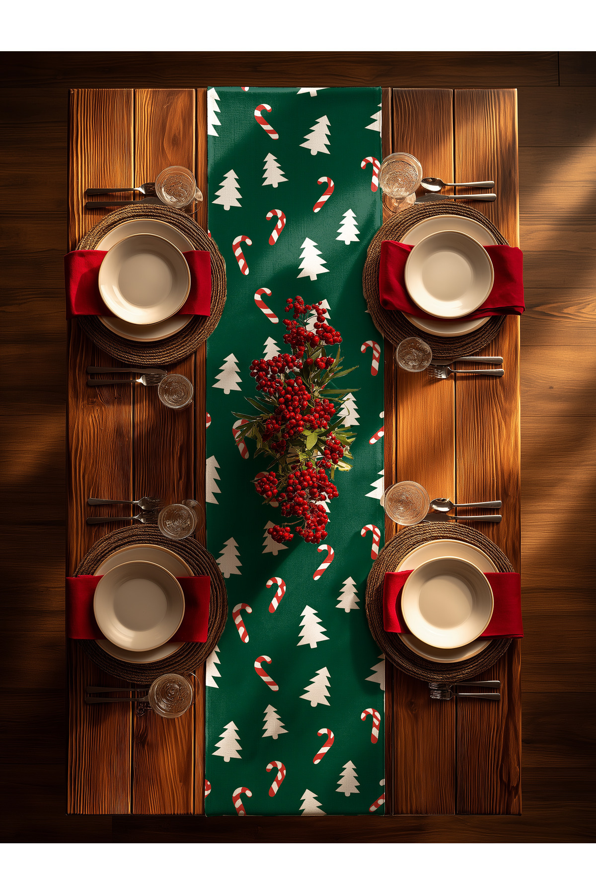 Yılbaşı Şeker Kamışı ve Çam Ağaçlı Yeşil Deseni Runner Yılbaşı Şeker Kamışı ve Çam Ağaçlı Yeşil Deseni Runner MDH00317 تک سایز