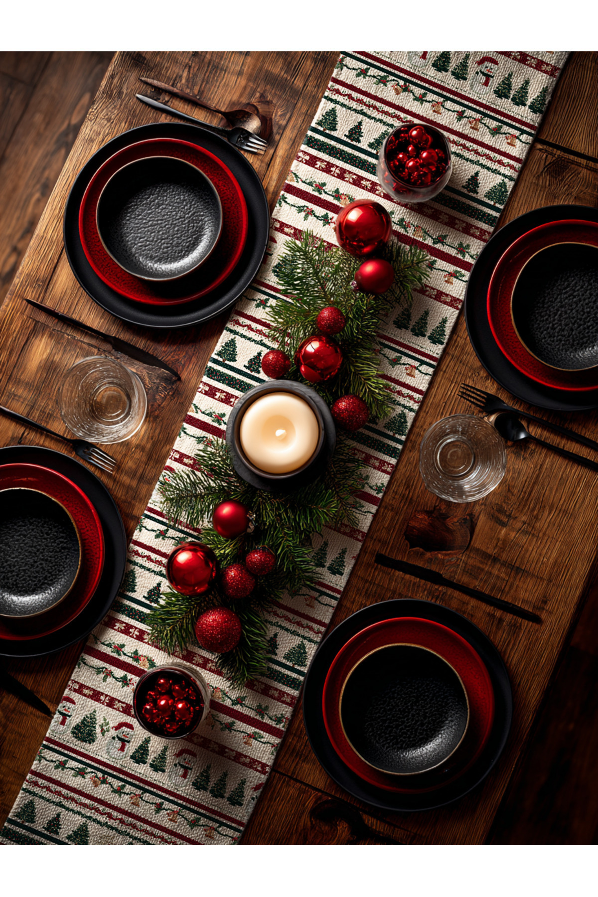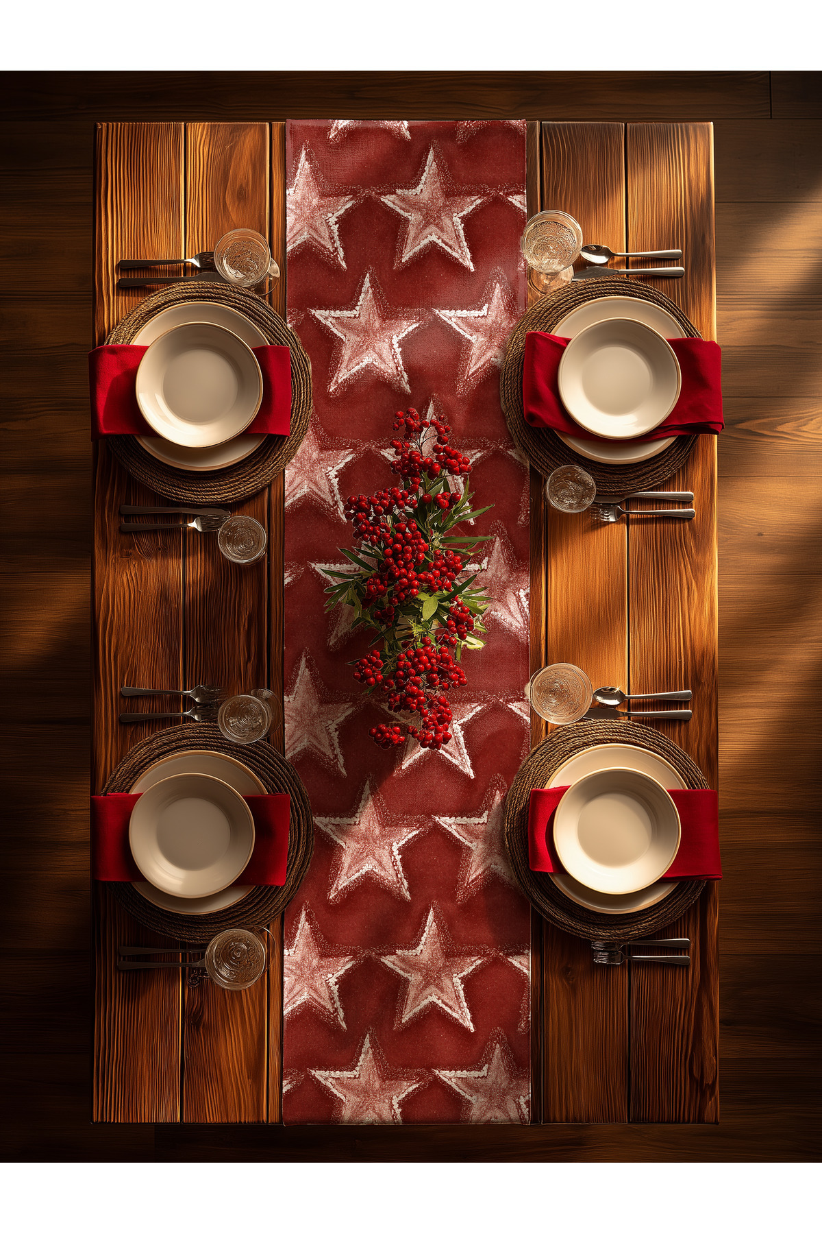 Yılbaşı Kırmızı Yıldız Desenli Runner Yılbaşı Kırmızı Yıldız Desenli Runner MDH00319 تک سایز