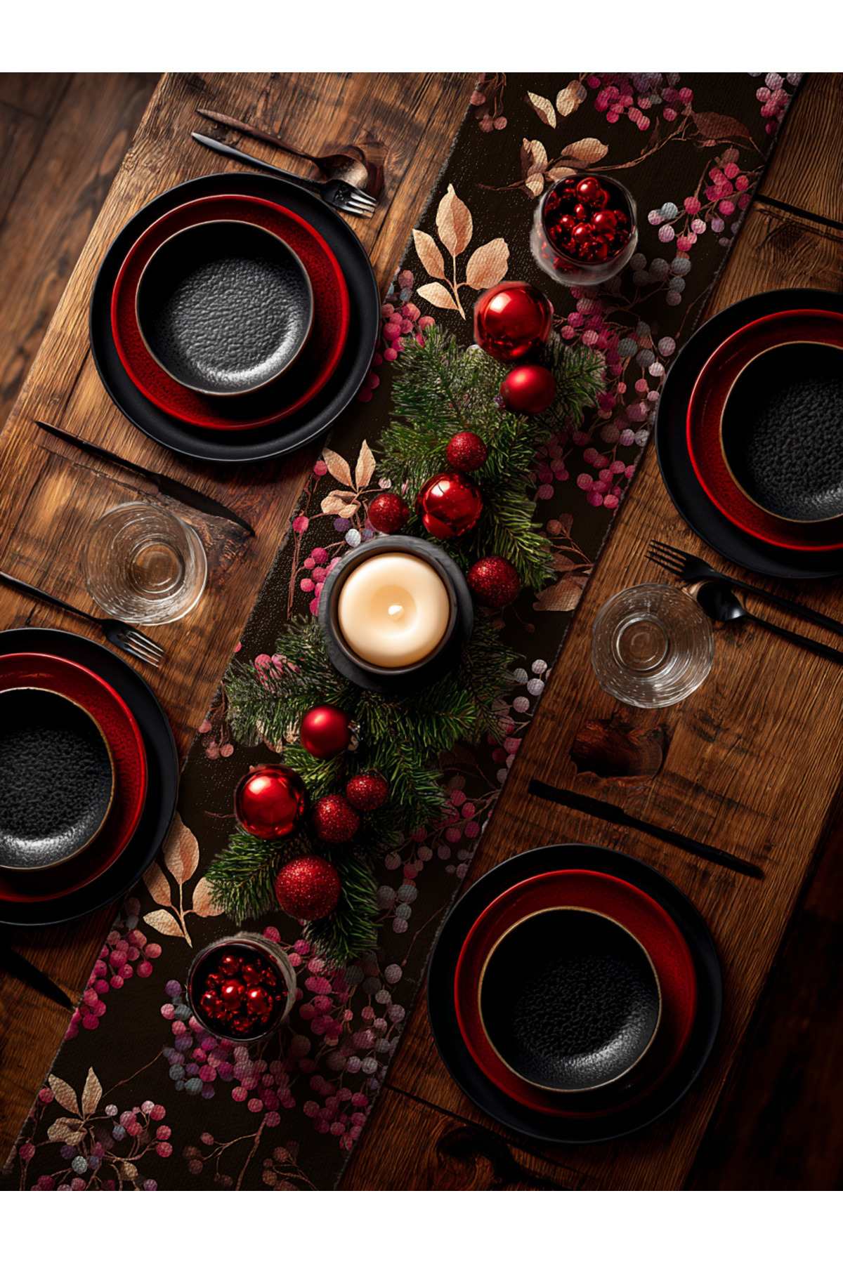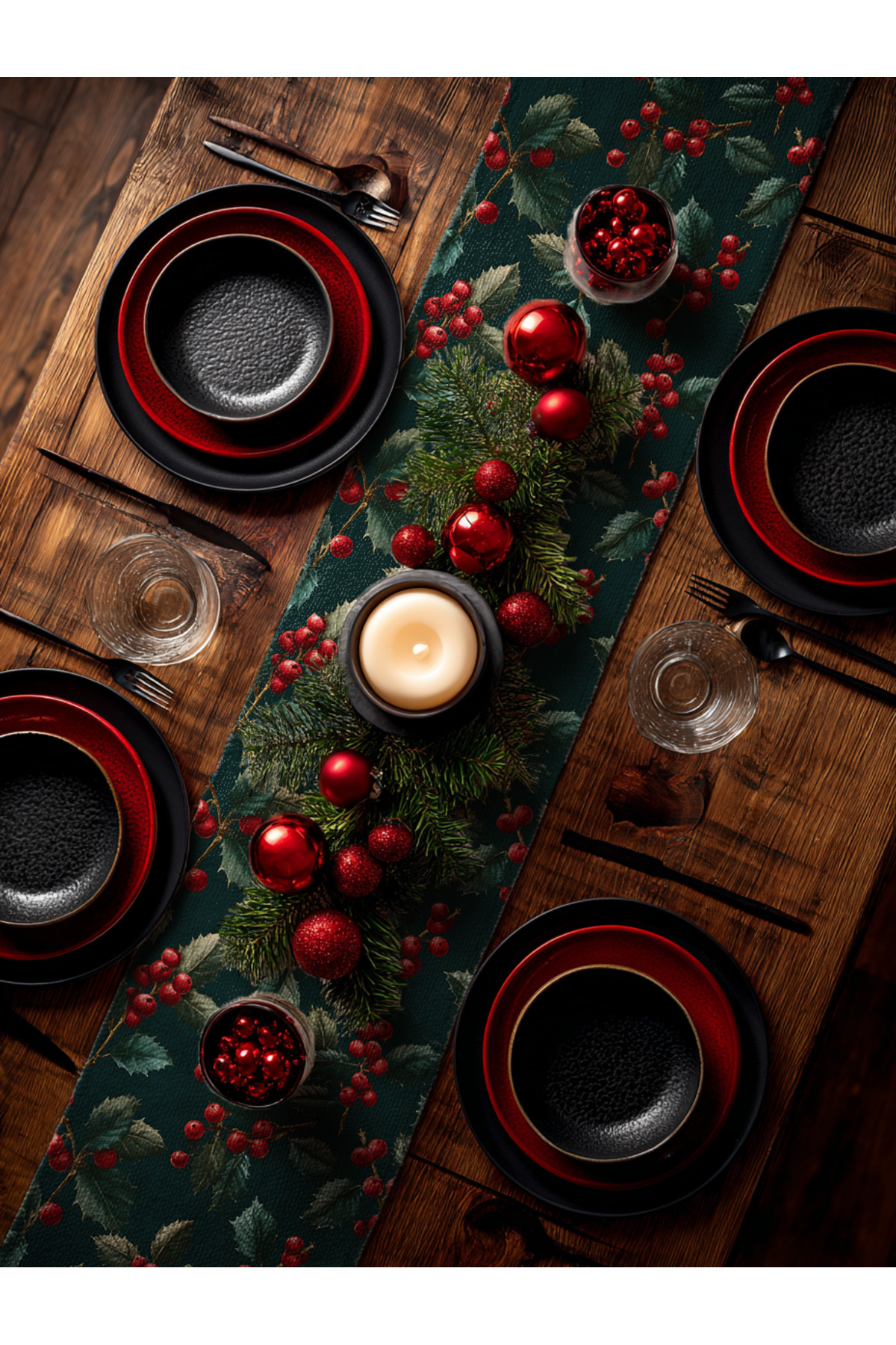 Yılbaşı Evergreen Berry Kırmızı Meyveli Yaprak Desenli Runner – Siyah Yeşil Yılbaşı Evergreen Berry Kırmızı Meyveli Yaprak Desenli Runner – Siyah Yeşil MDH00289 تک سایز