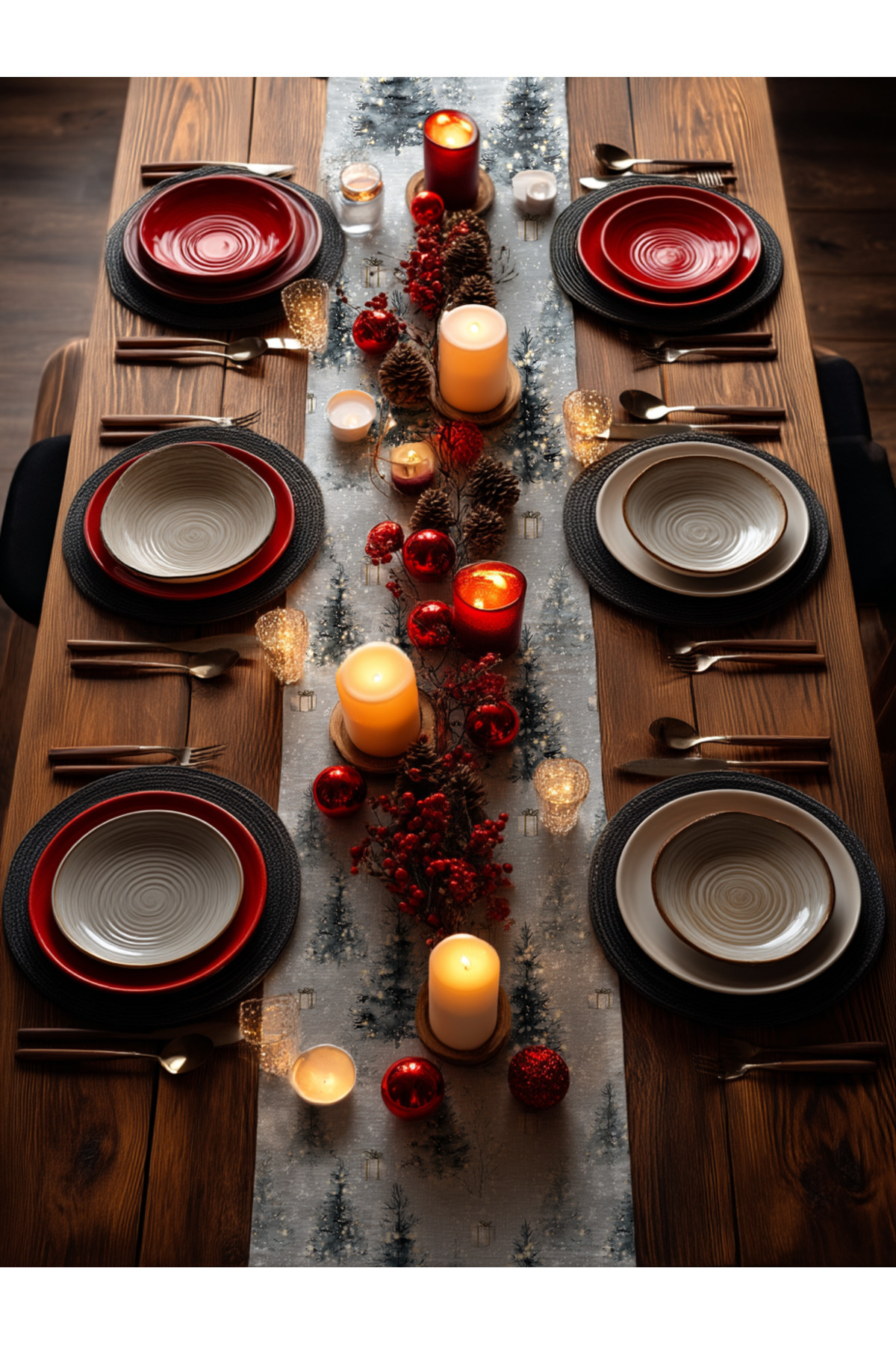 Yılbaşı Karlı Orman Deseni Runner Yılbaşı Karlı Orman Deseni Runner MDH00312 تک سایز