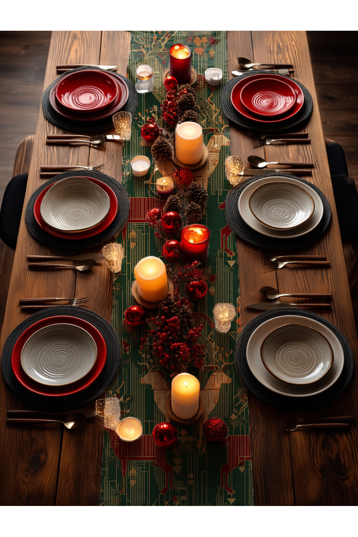 Yılbaşı Golden Forest Soyut Geyik Desenli Runner – Yeşil & Kırmızı Tonları Yılbaşı Golden Forest Soyut Geyik Desenli Runner – Yeşil & Kırmızı Tonları MDH00295 تک سایز