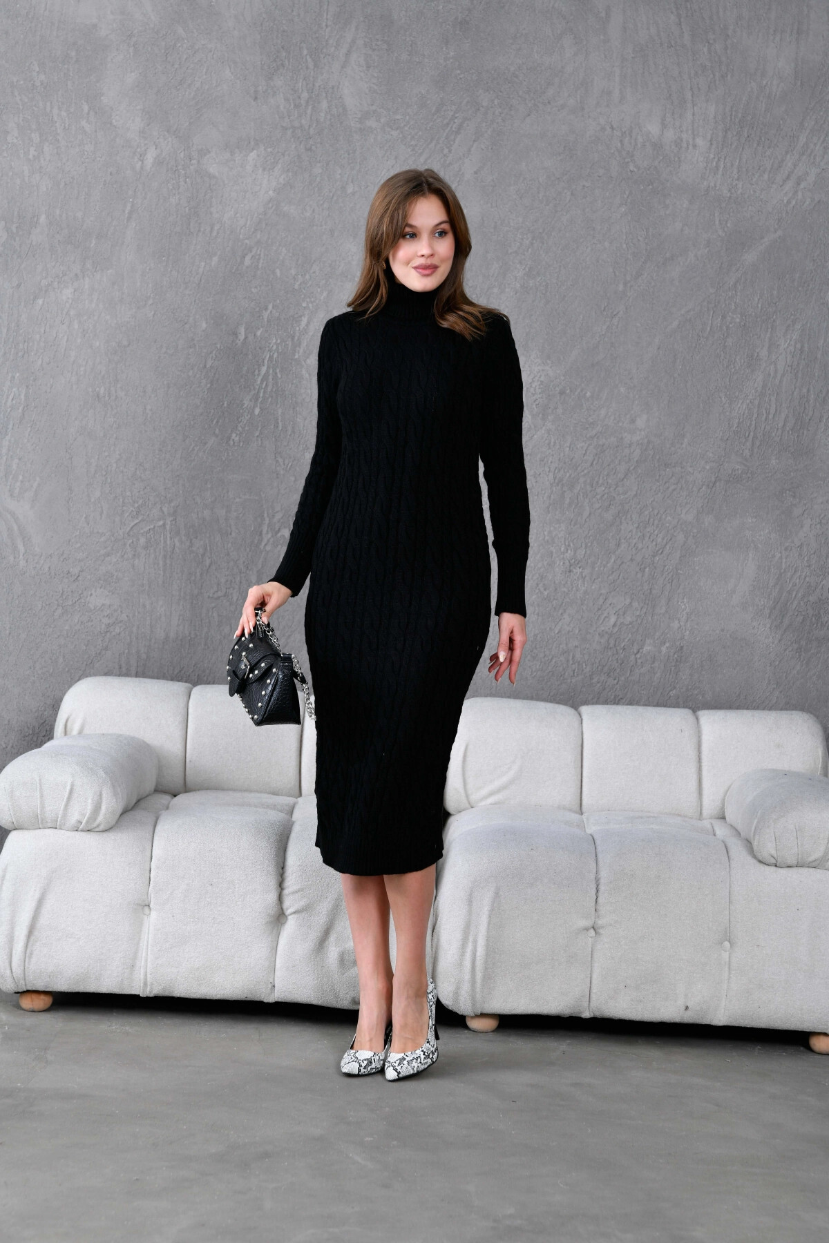 Kadın Balıkçı Yaka Örgü Detay Kışlık Triko Kelbise Kadın Balıkçı Yaka Örgü Detay Kışlık Triko Kelbise 7727 Standart
