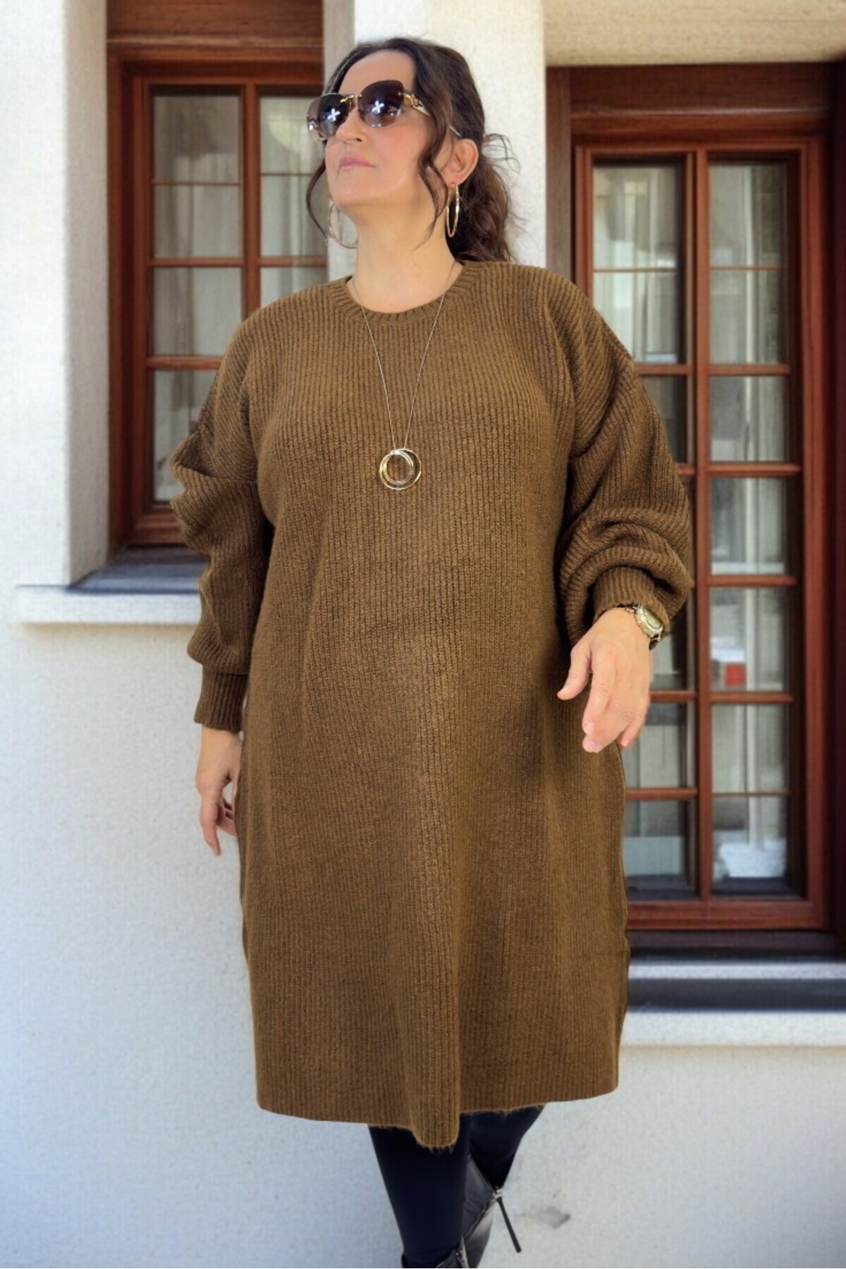 SELANİK ÖRGÜ BALON KOL BÜYÜK BEDEN KADIN TRİKO KAZAK TUNİK SELANİK ÖRGÜ BALON KOL BÜYÜK BEDEN KADIN TRİKO KAZAK TUNİK 463874 58-60