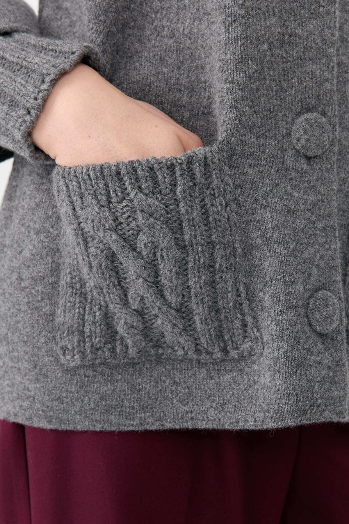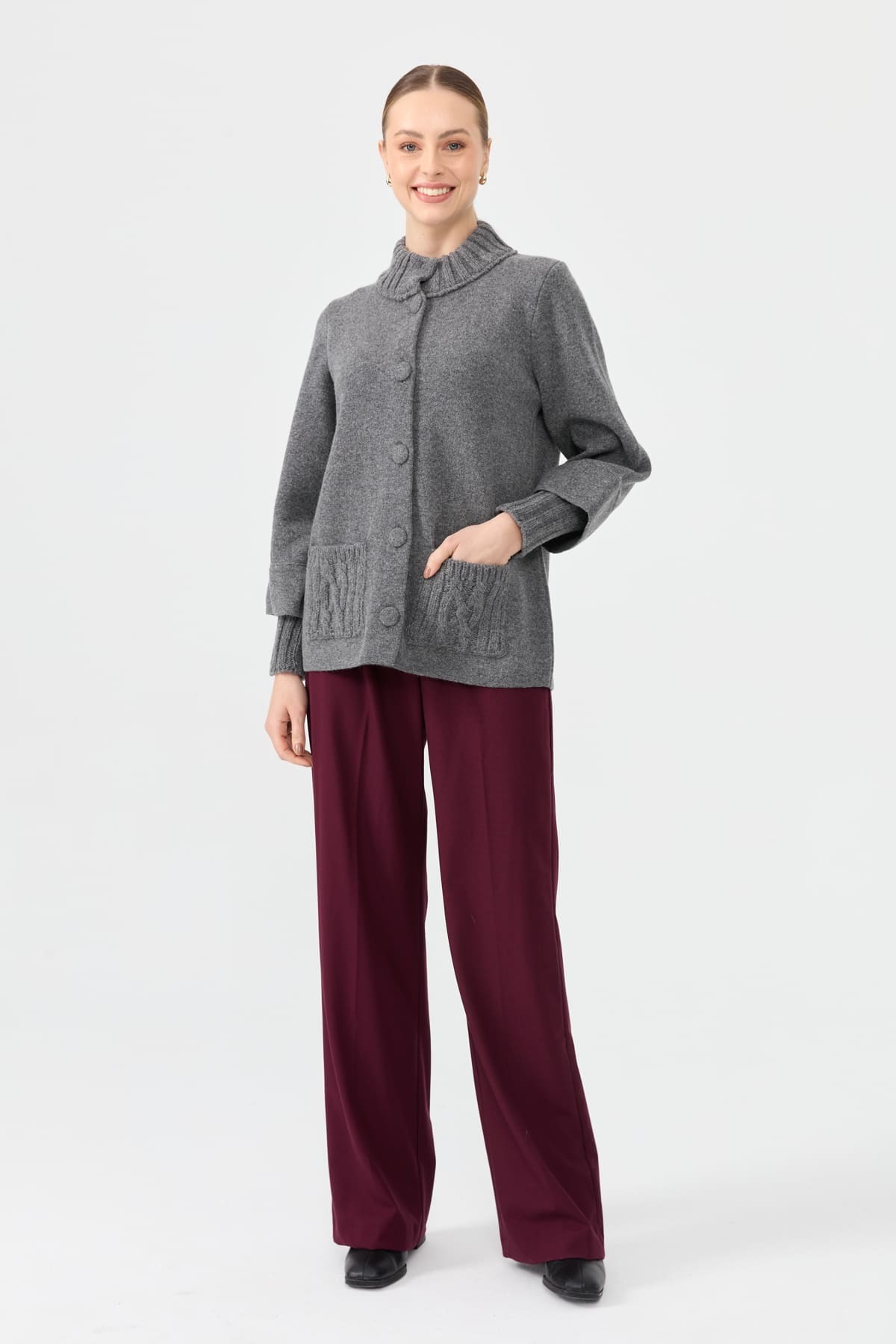Kadın Dik Yaka Truvakar Kol Kısa Yün Ceket Füme Kadın Dik Yaka Truvakar Kol Kısa Yün Ceket Füme 24046 XL