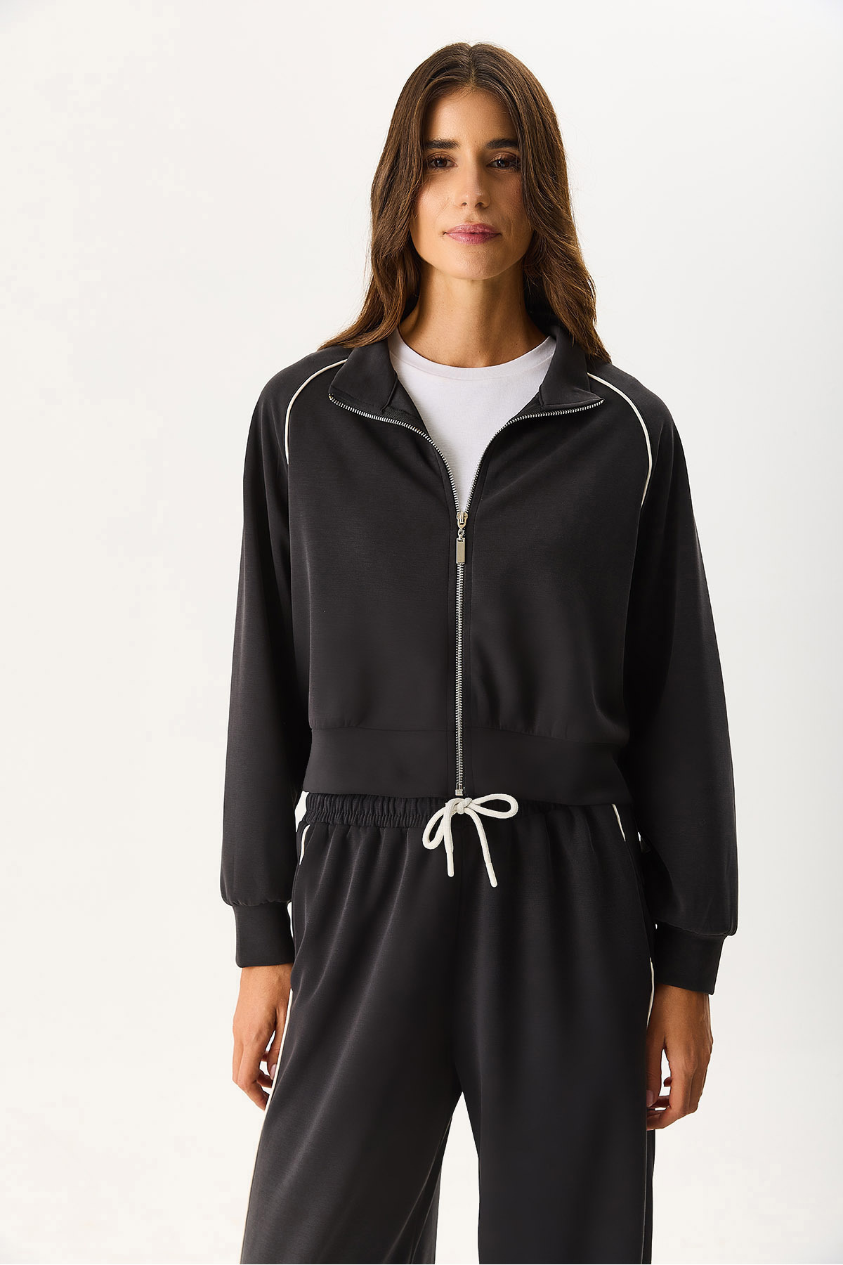 Kadın Dik Yaka Yanı Şeritli Yumuşak Dokulu Sweatshirt (CUPRO) - Siyah Kadın Dik Yaka Yanı Şeritli Yumuşak Dokulu Sweatshirt (CUPRO) - Siyah 2K26205228 XL