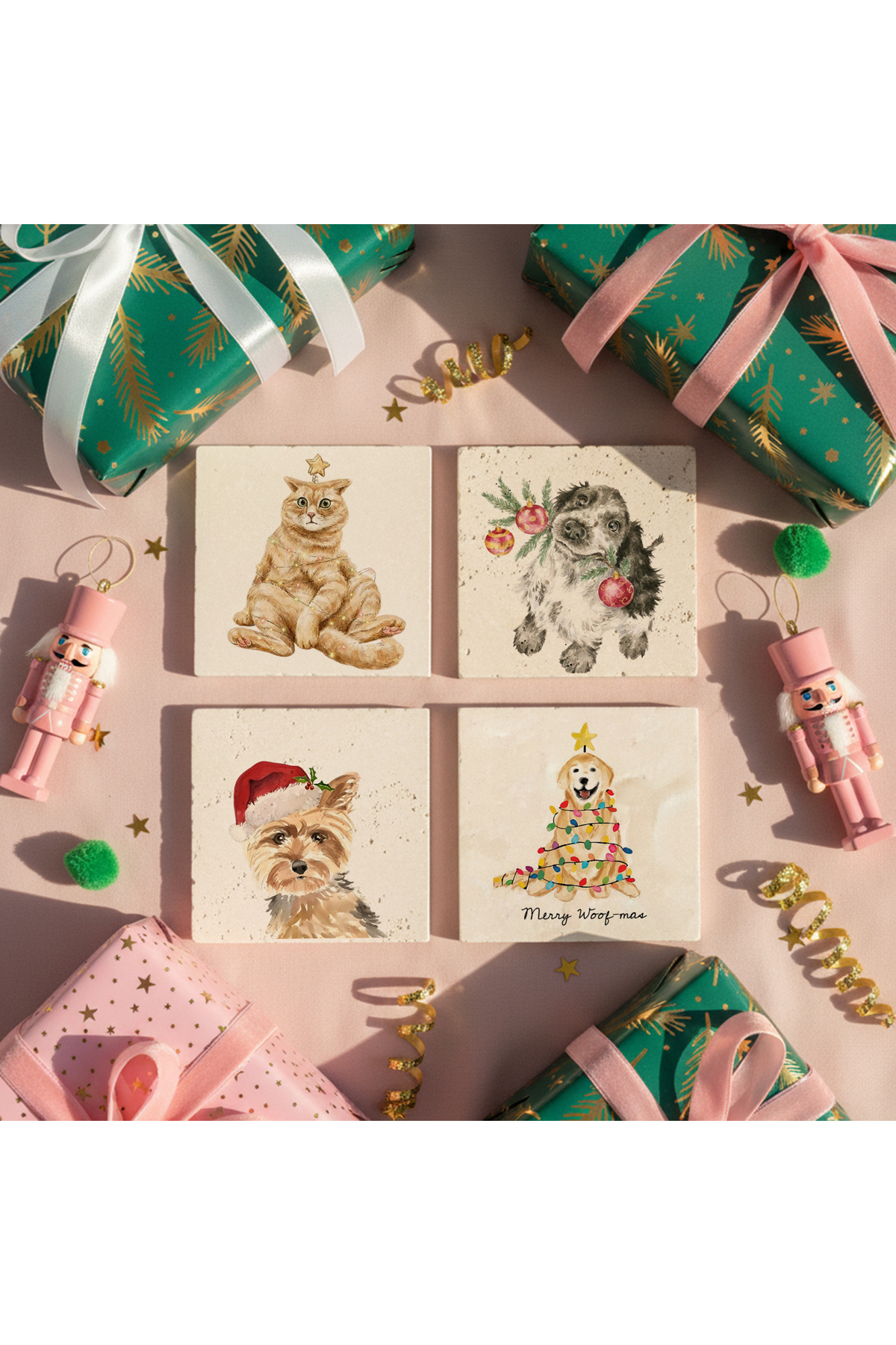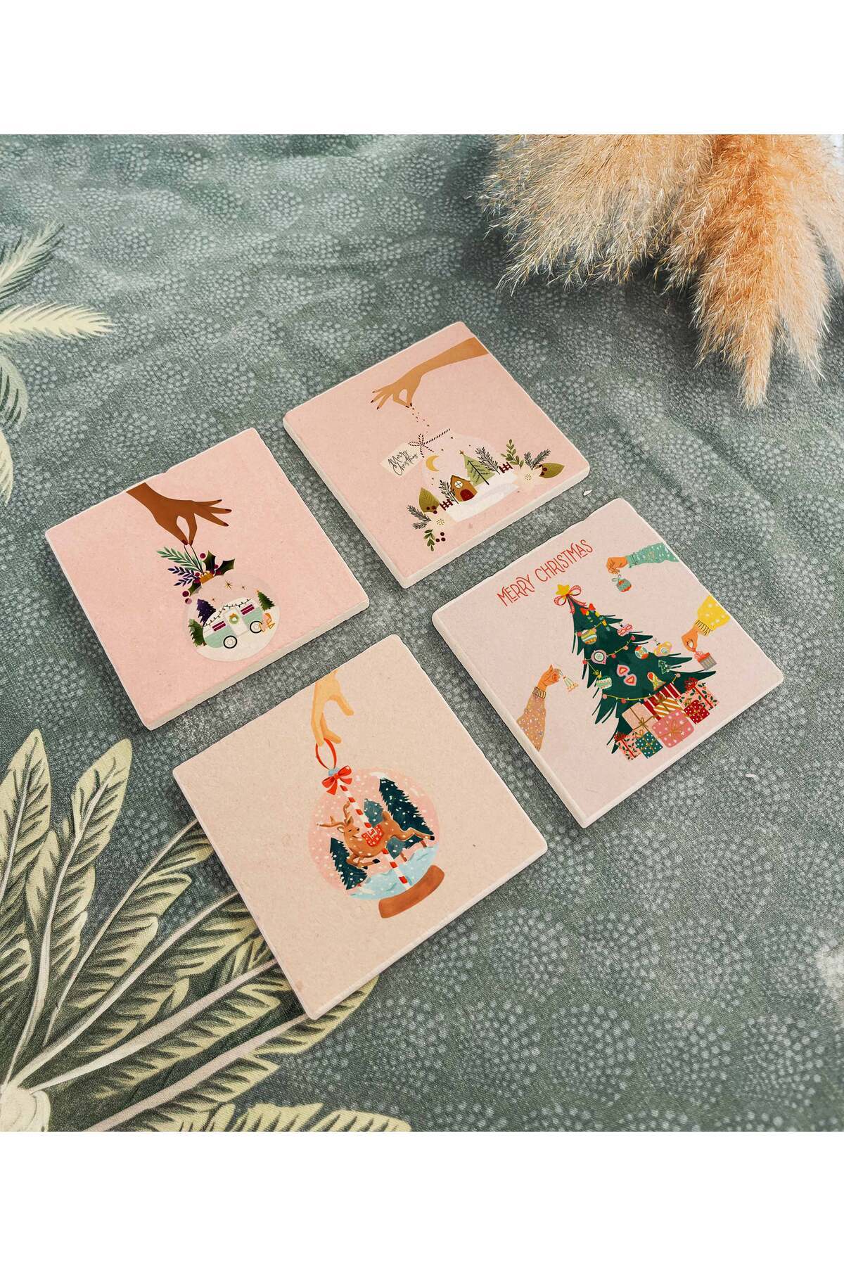 Pembe Yılbaşı Temalı Doğal Taş Bardak Altlığı, Modern Christmas Tasarımı, Yılbaşı Hediyesi, 4’lü Pembe Yılbaşı Temalı Doğal Taş Bardak Altlığı, Modern Christmas Tasarımı, Yılbaşı Hediyesi, 4’lü ars0226 تک سایز