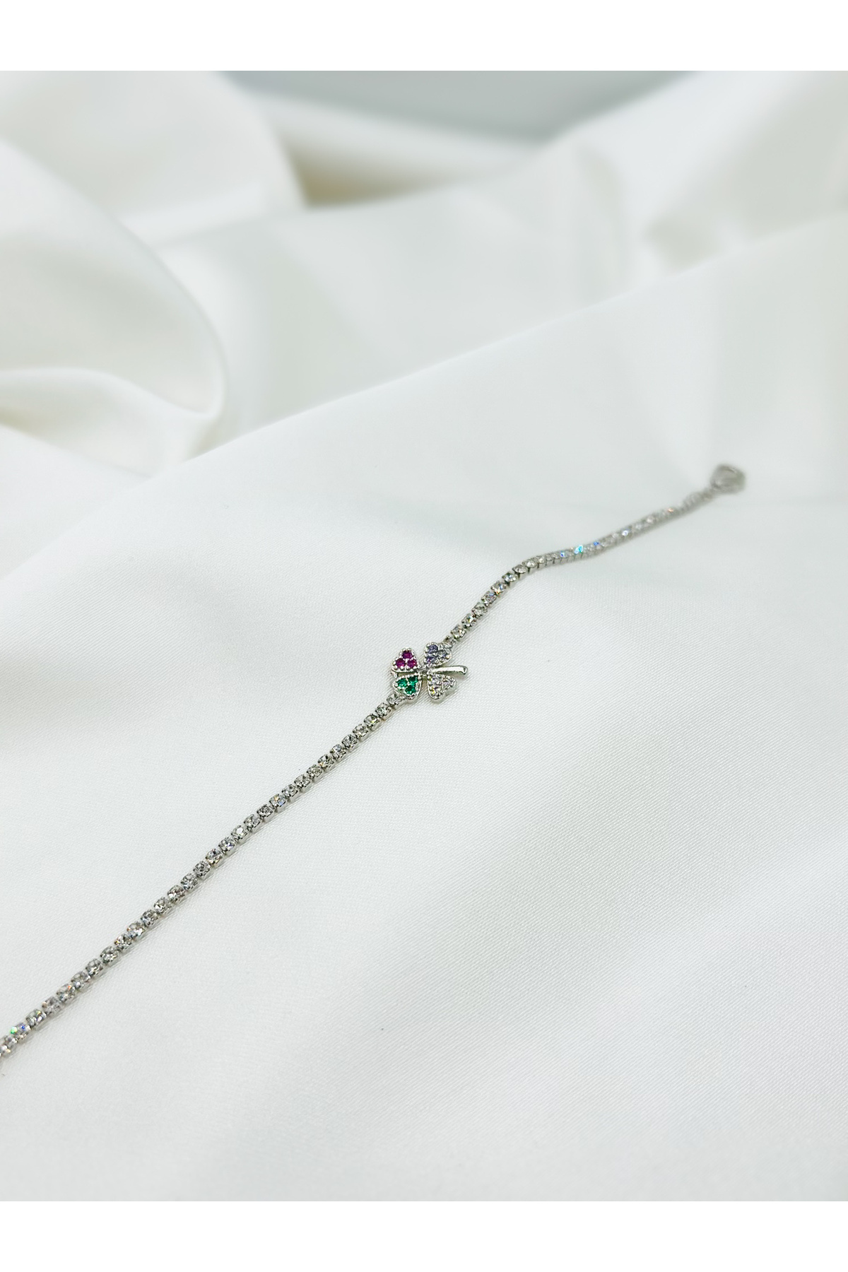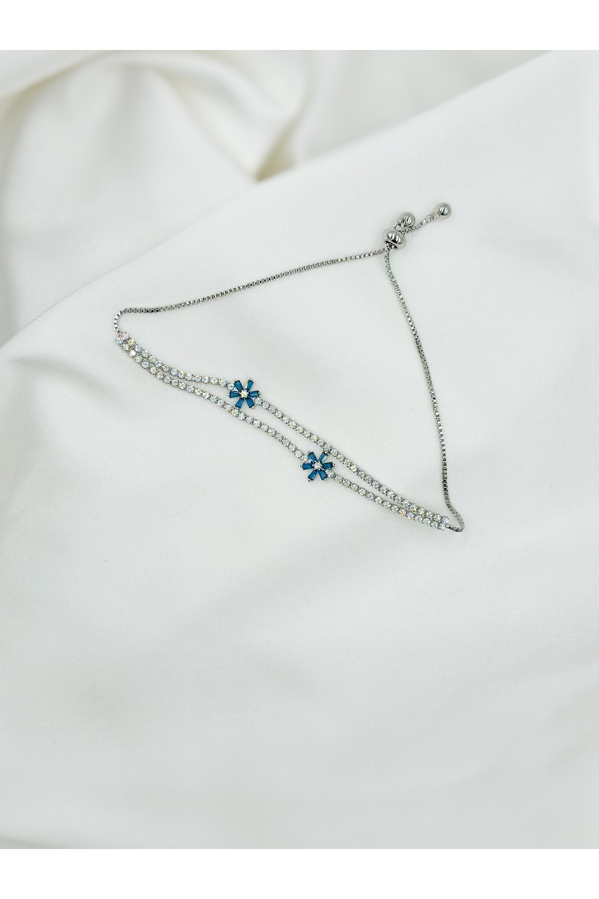 Gümüş Renk Zirkon Taşlı Mavi Çiçek Asansörlü Bileklik Gümüş Renk Zirkon Taşlı Mavi Çiçek Asansörlü Bileklik BT12310007 تک سایز