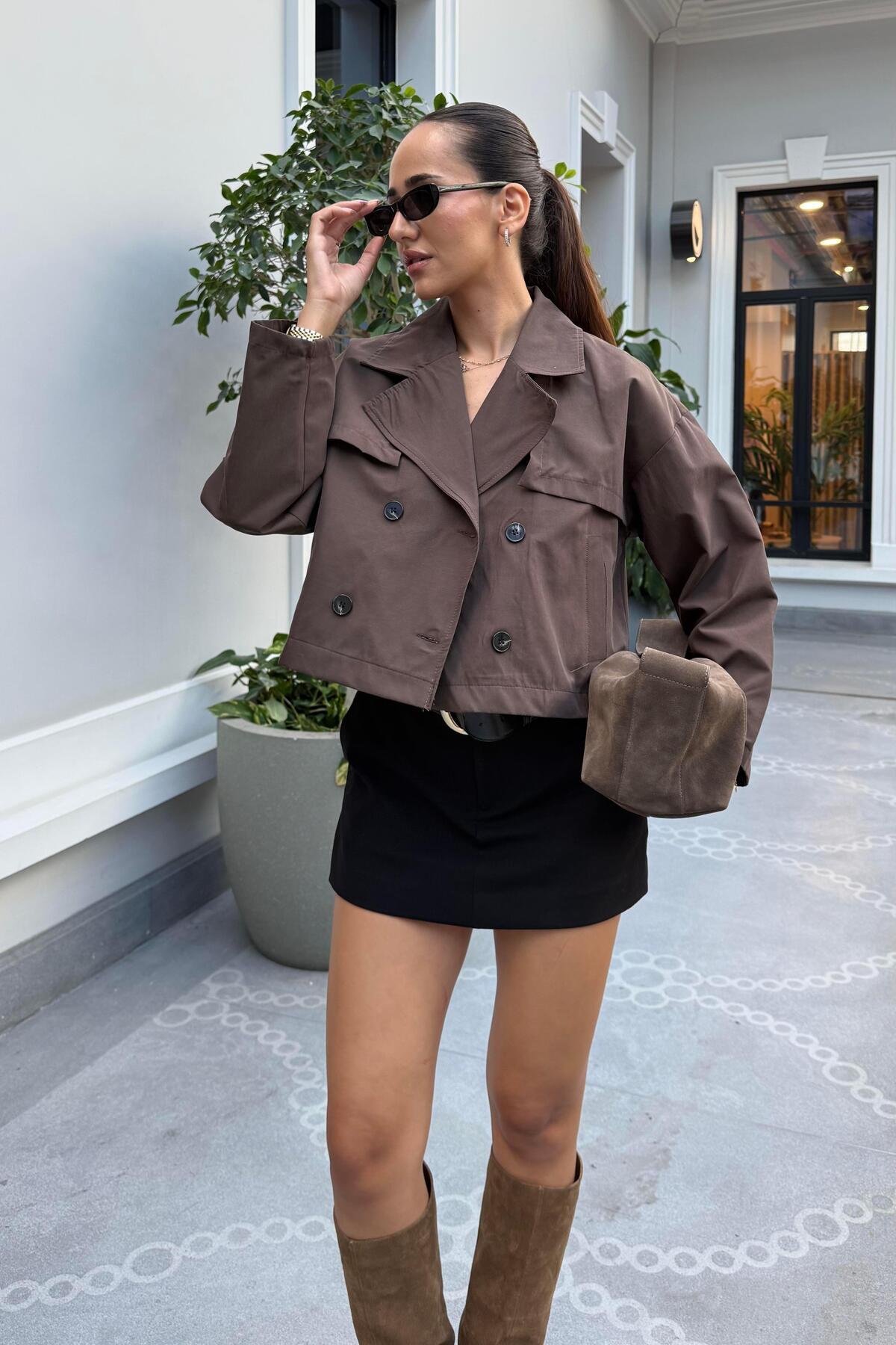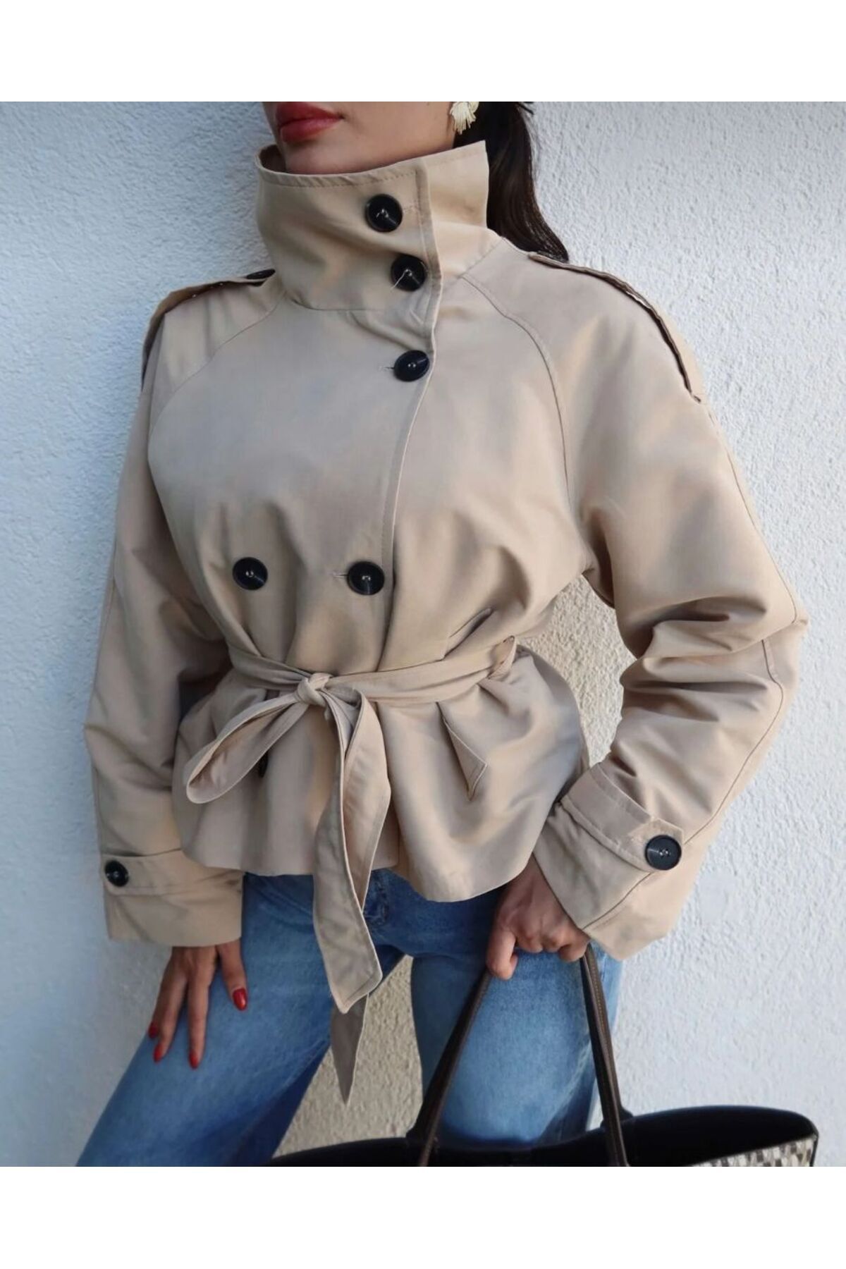 Taş Renk Dik Yaka Midi Trençkot Taş Renk Dik Yaka Midi Trençkot NZL11050 L
