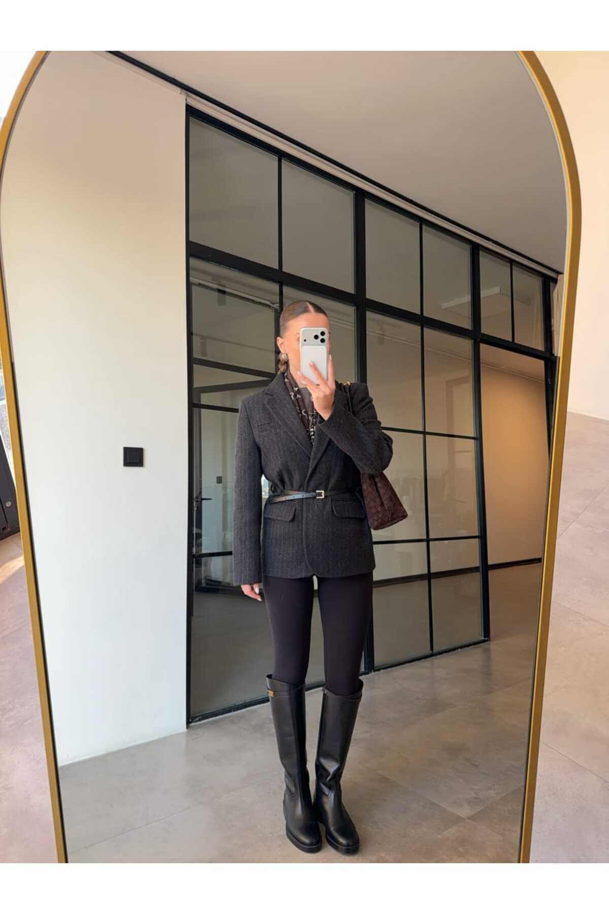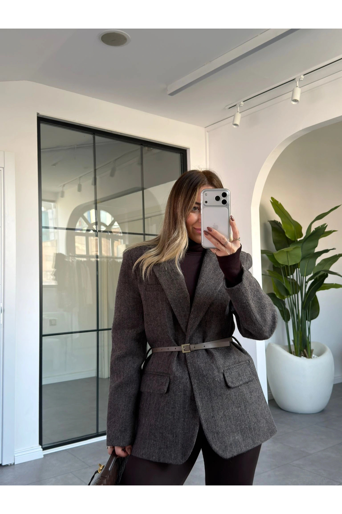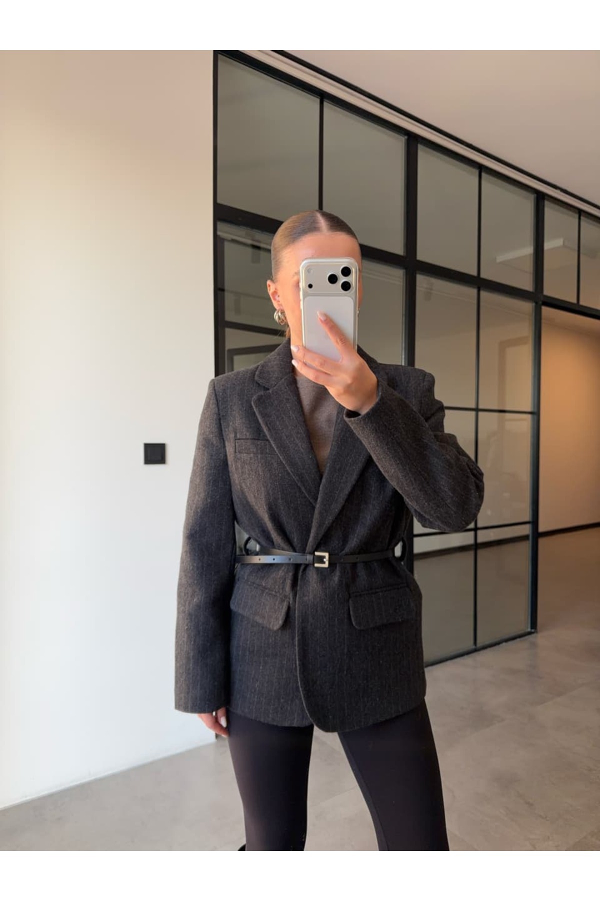 ANTRASİT ÇİZGİLİ KEMERLİ KAŞE CEKET ANTRASİT ÇİZGİLİ KEMERLİ KAŞE CEKET BB26PRY9634A XL