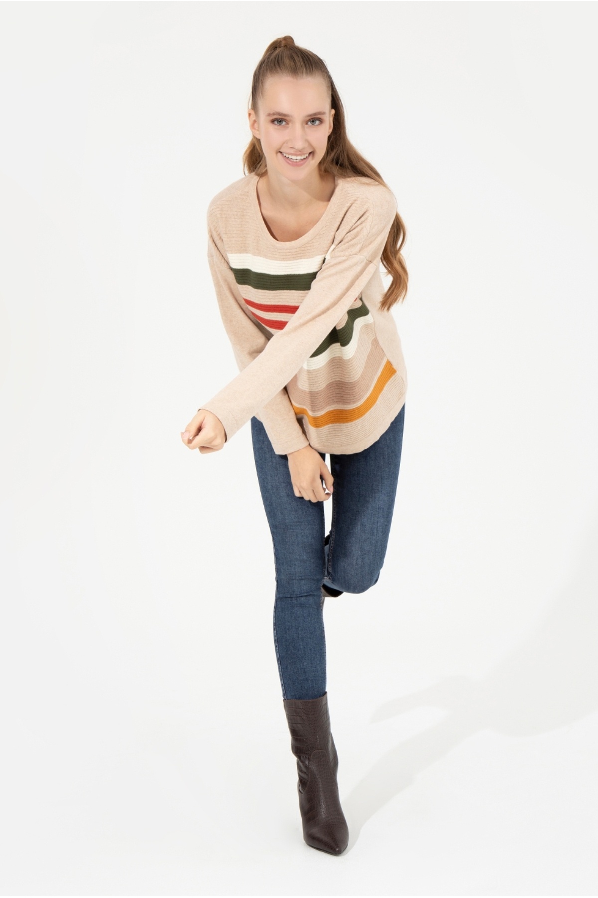 Kadın Bej Melanj Bisiklet Yaka Kazak Kadın Bej Melanj Bisiklet Yaka Kazak G082GLOTK.000.1255575 XL