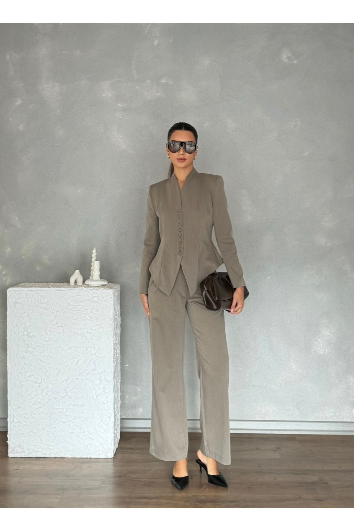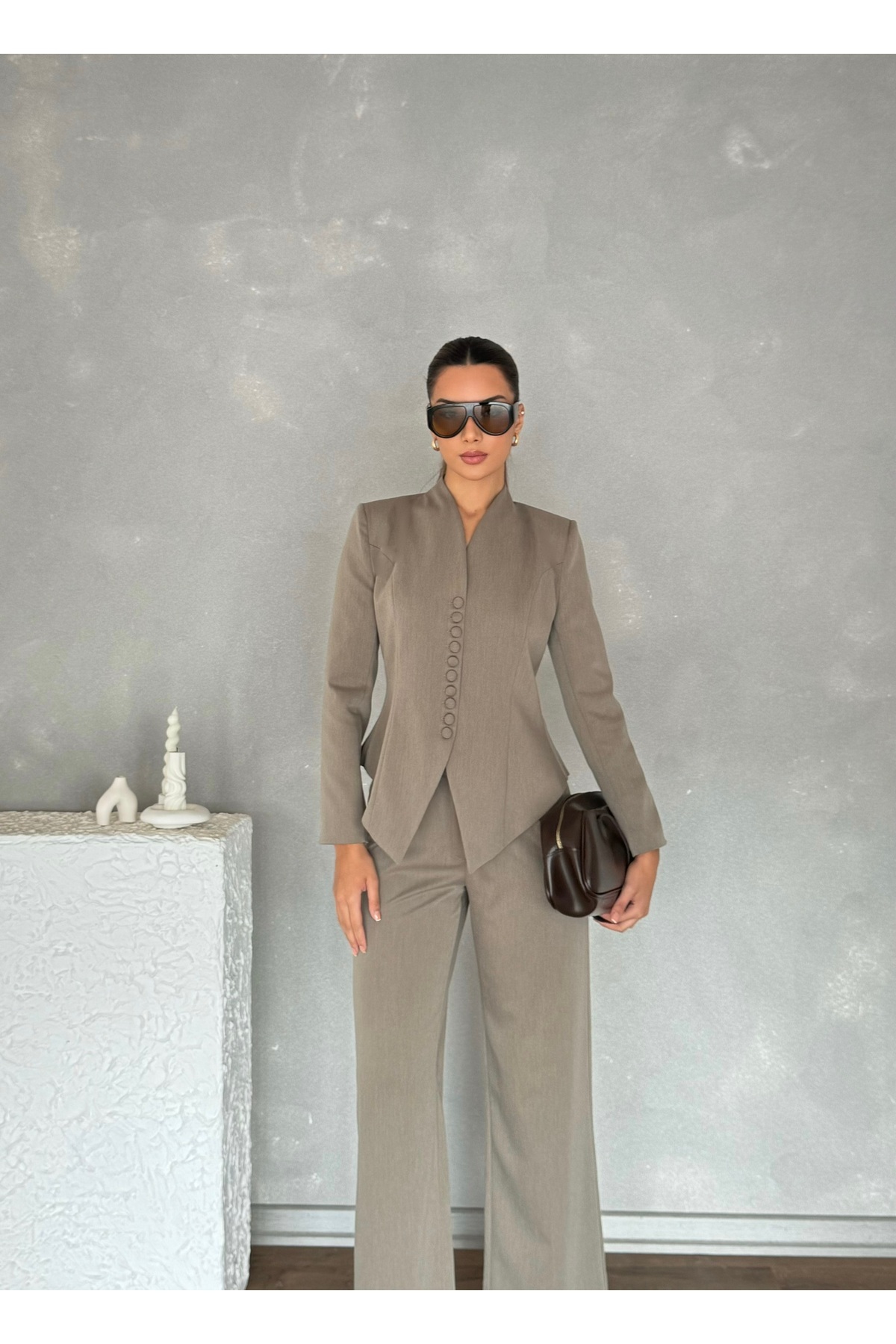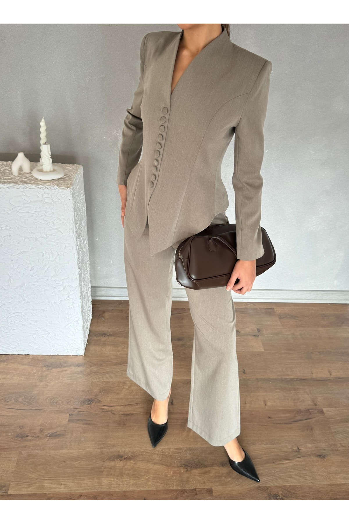 Vatkalı Önü Düğmeli Klasik Kadın Arven Ceket Pantolon Takım Vatkalı Önü Düğmeli Klasik Kadın Arven Ceket Pantolon Takım EU8070 XL