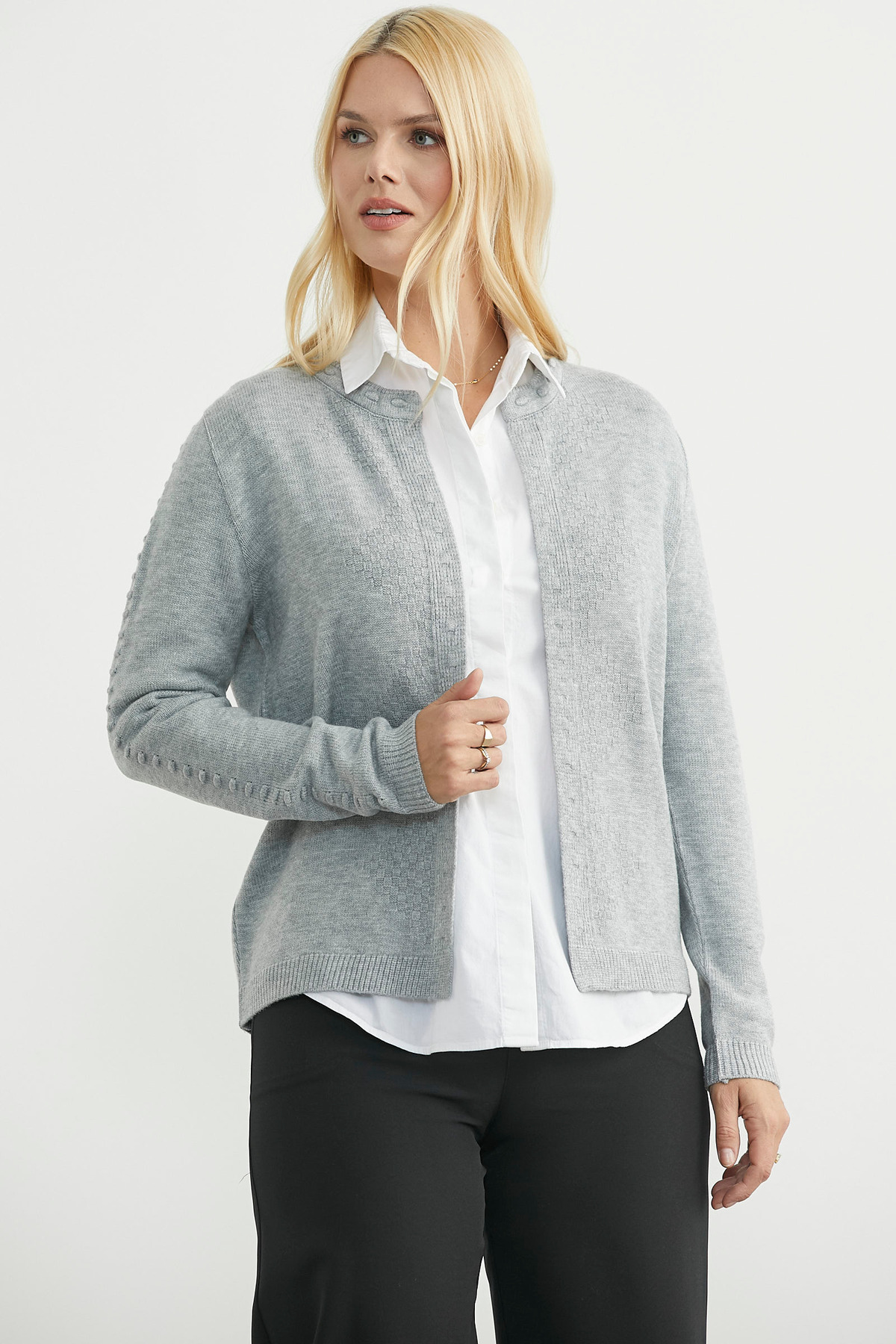 Yuvarlak Yaka Motifli Triko Hırka - Gri Yuvarlak Yaka Motifli Triko Hırka - Gri 24K2112-34523.0001 L