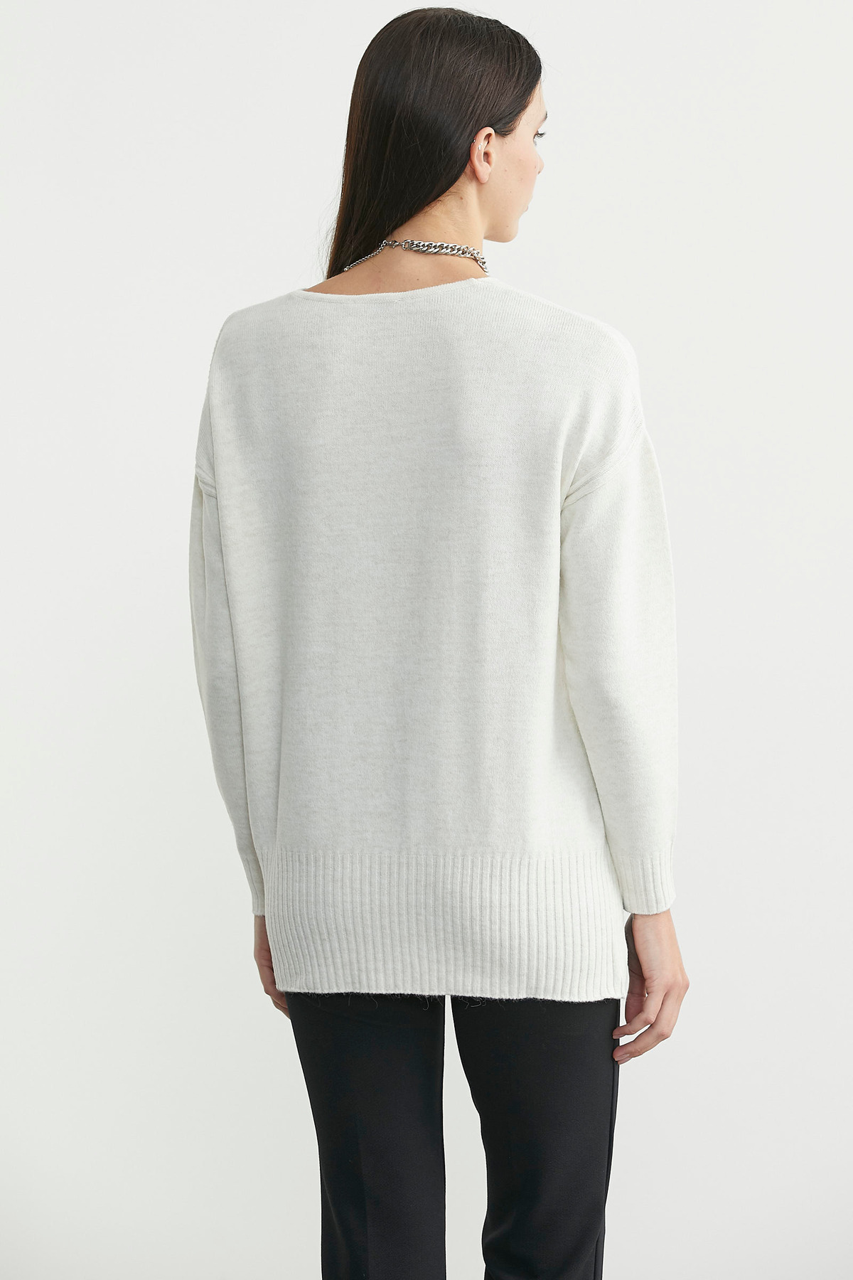 Oversize V Yaka Triko Kazak - Kemik Oversize V Yaka Triko Kazak - Kemik 25K2115-32591.0001 M