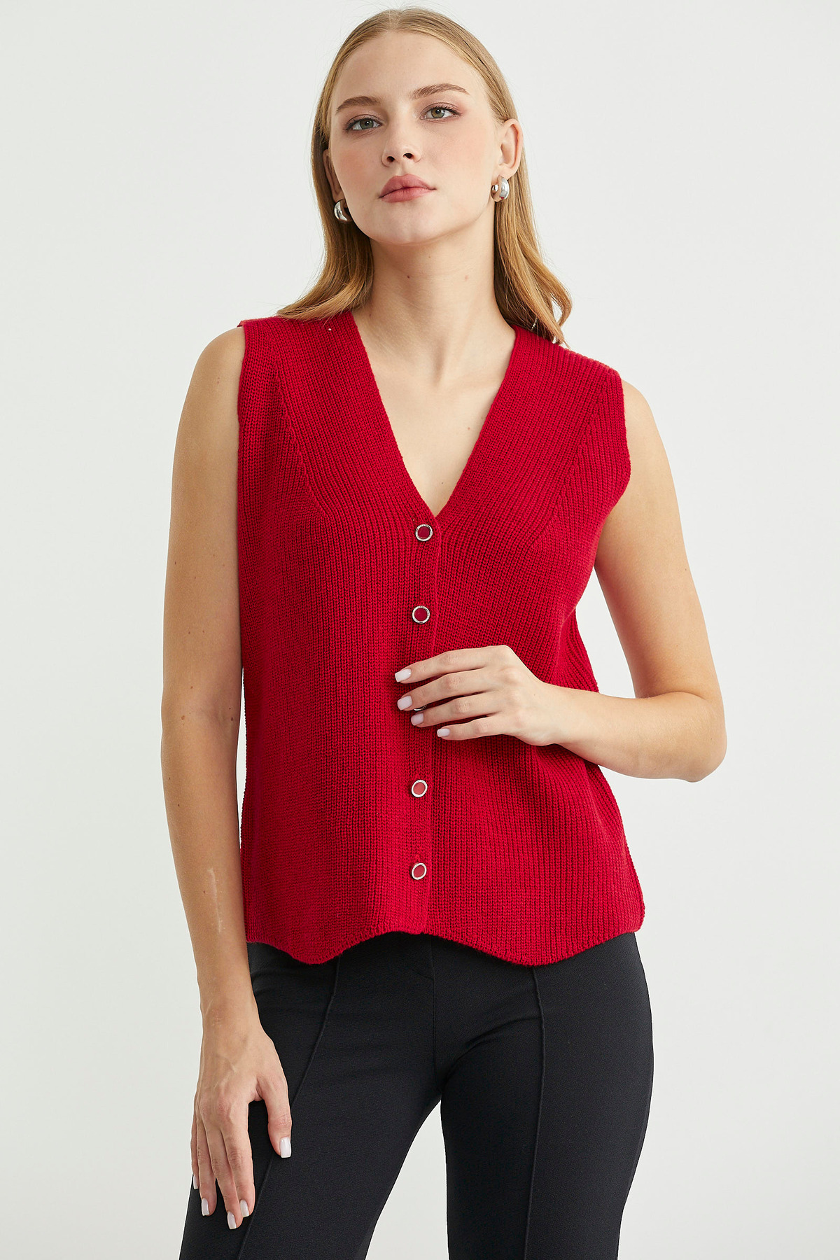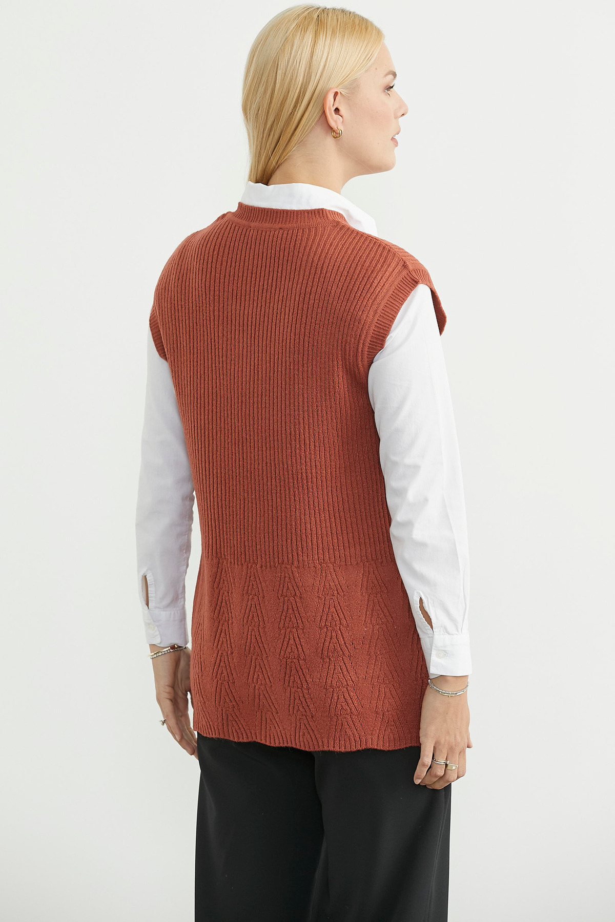 Cepli Düğmeli Triko Yelek - Taba Cepli Düğmeli Triko Yelek - Taba 25K2133-34545.0001 L