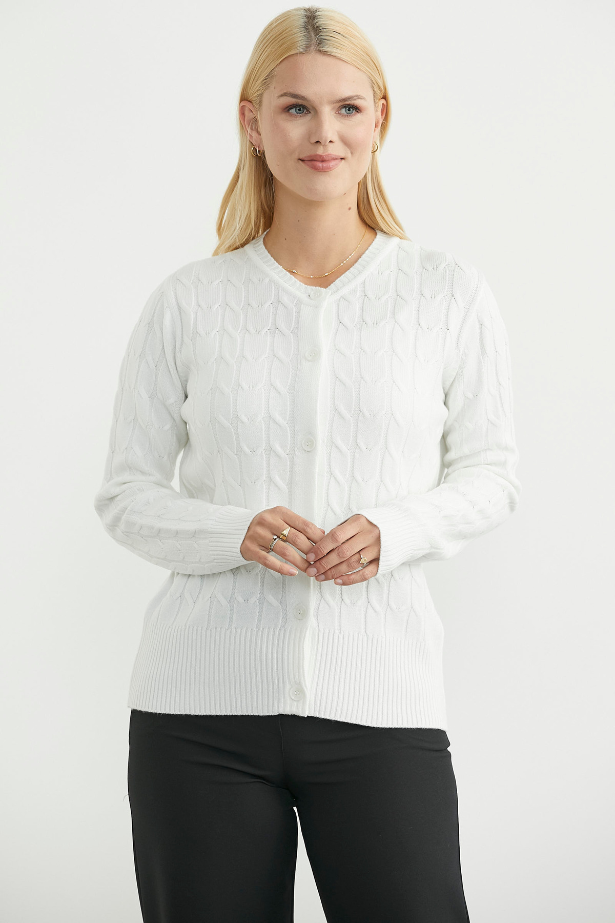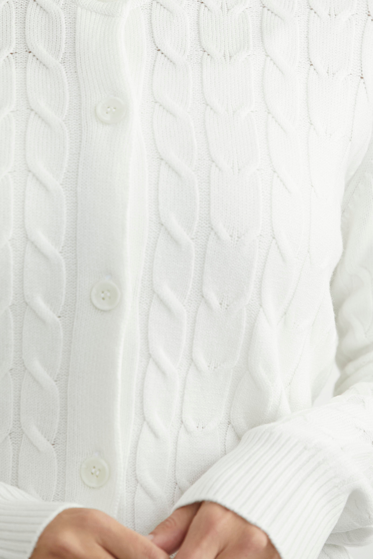 Düğmeli Sıfır Yaka Triko Hırka - Kemik Düğmeli Sıfır Yaka Triko Hırka - Kemik 25K2112-34581.0001 L