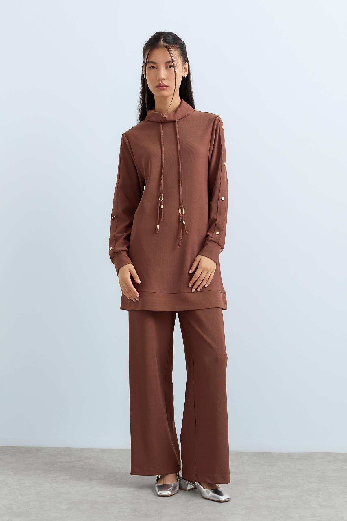 Parlak Taş Detaylı Örme Pantolon Tunik Takım Olive Parlak Taş Detaylı Örme Pantolon Tunik Takım Olive 252TK5120NH.1 48