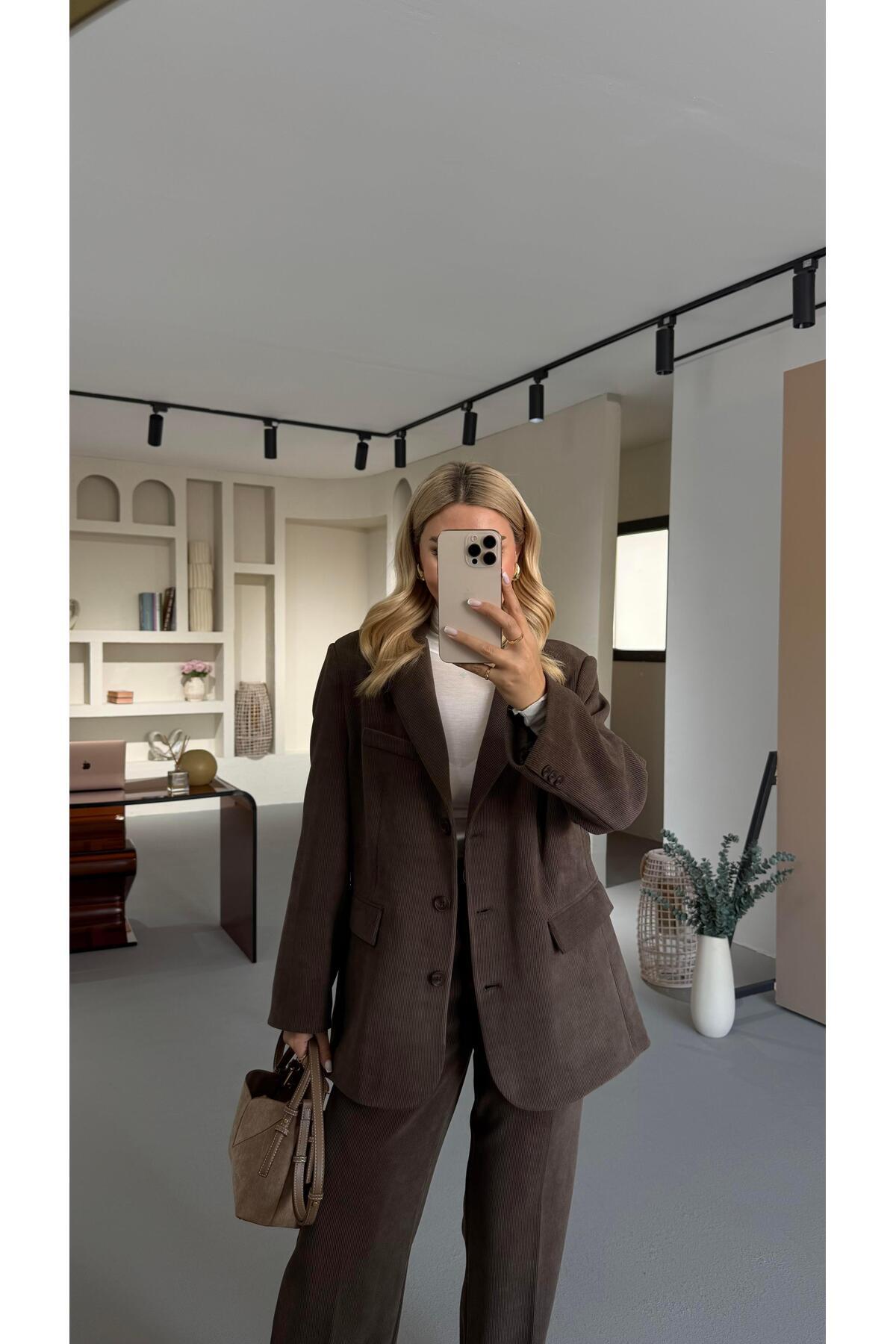 Gold Düğme Detay Bordo Kazayağı Desen Ceket Gold Düğme Detay Bordo Kazayağı Desen Ceket CKT-0177-BRD L